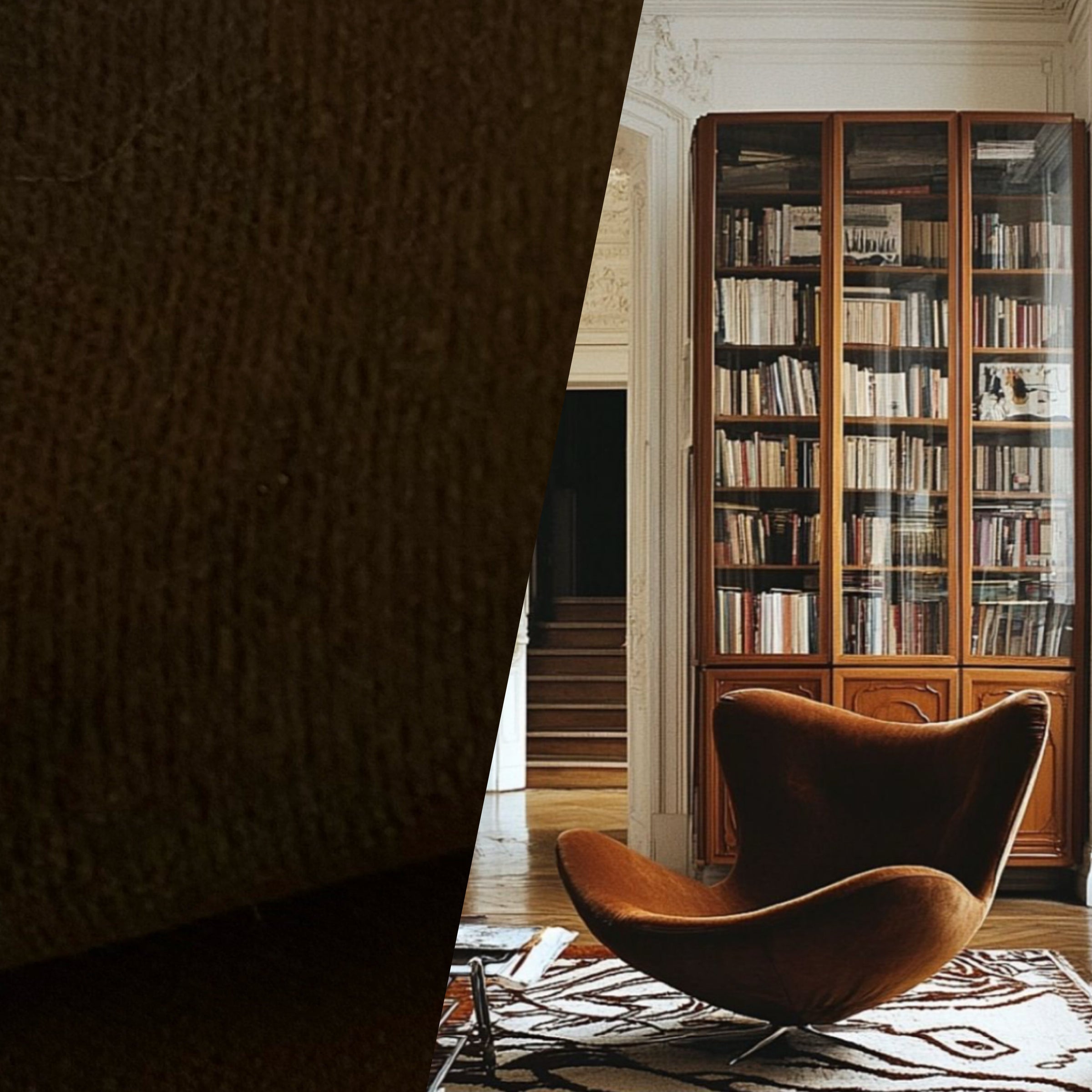 A beautiful durable upholstery weight designer velvet woven fabric with a soft even hand. Can be used for upholstery, interior decorating, or coat garments. Sold by the yard. Chocolate Brown. 56” wide.
