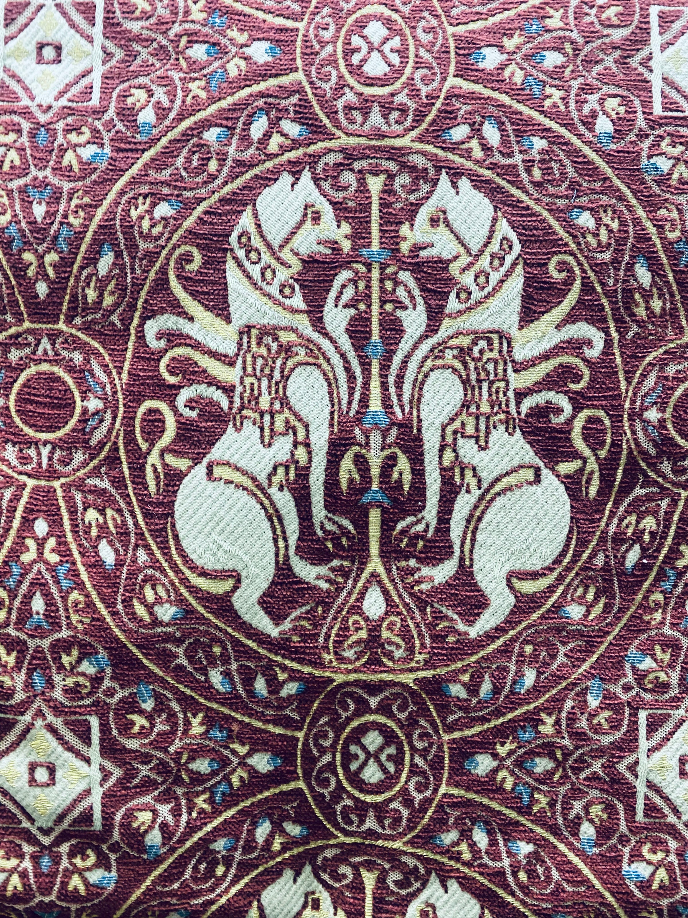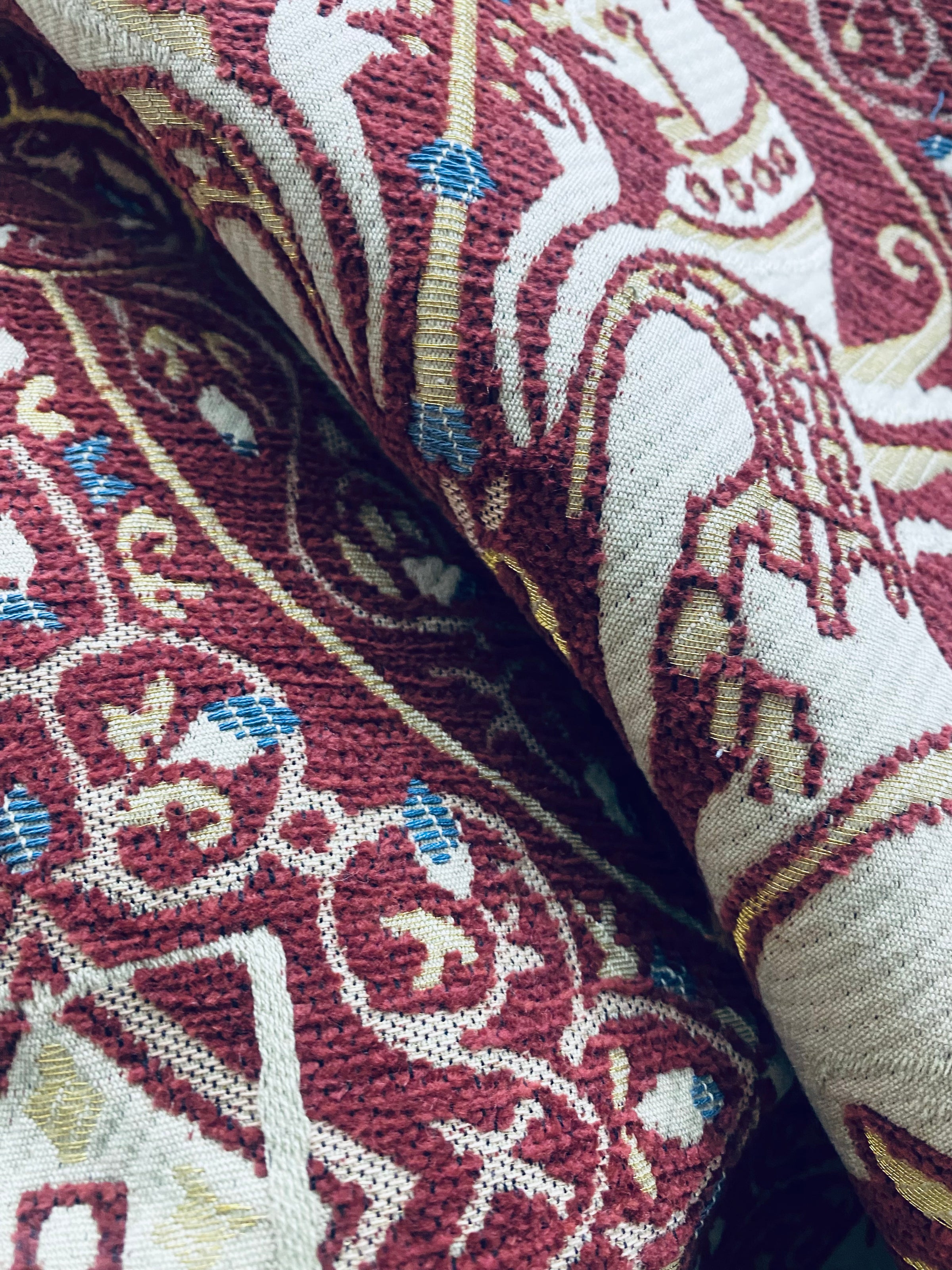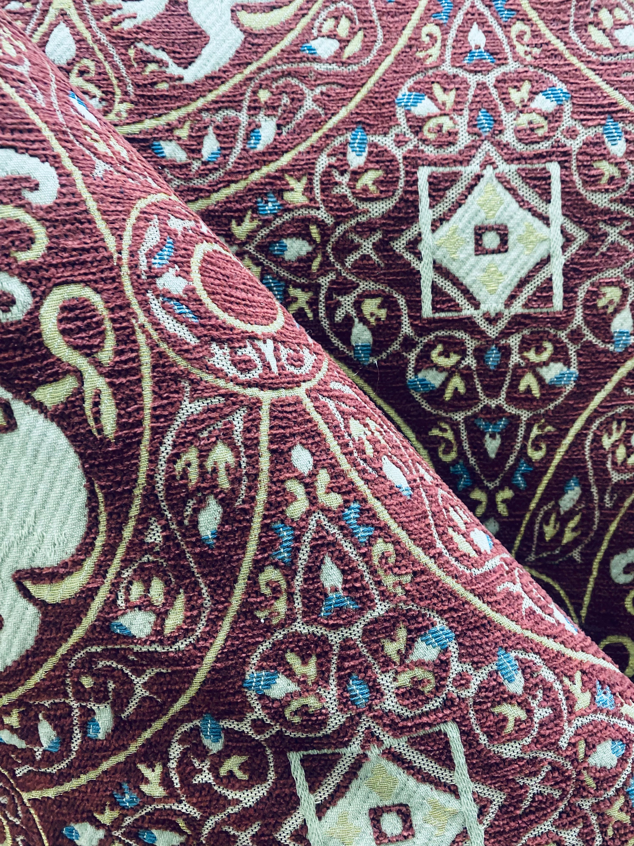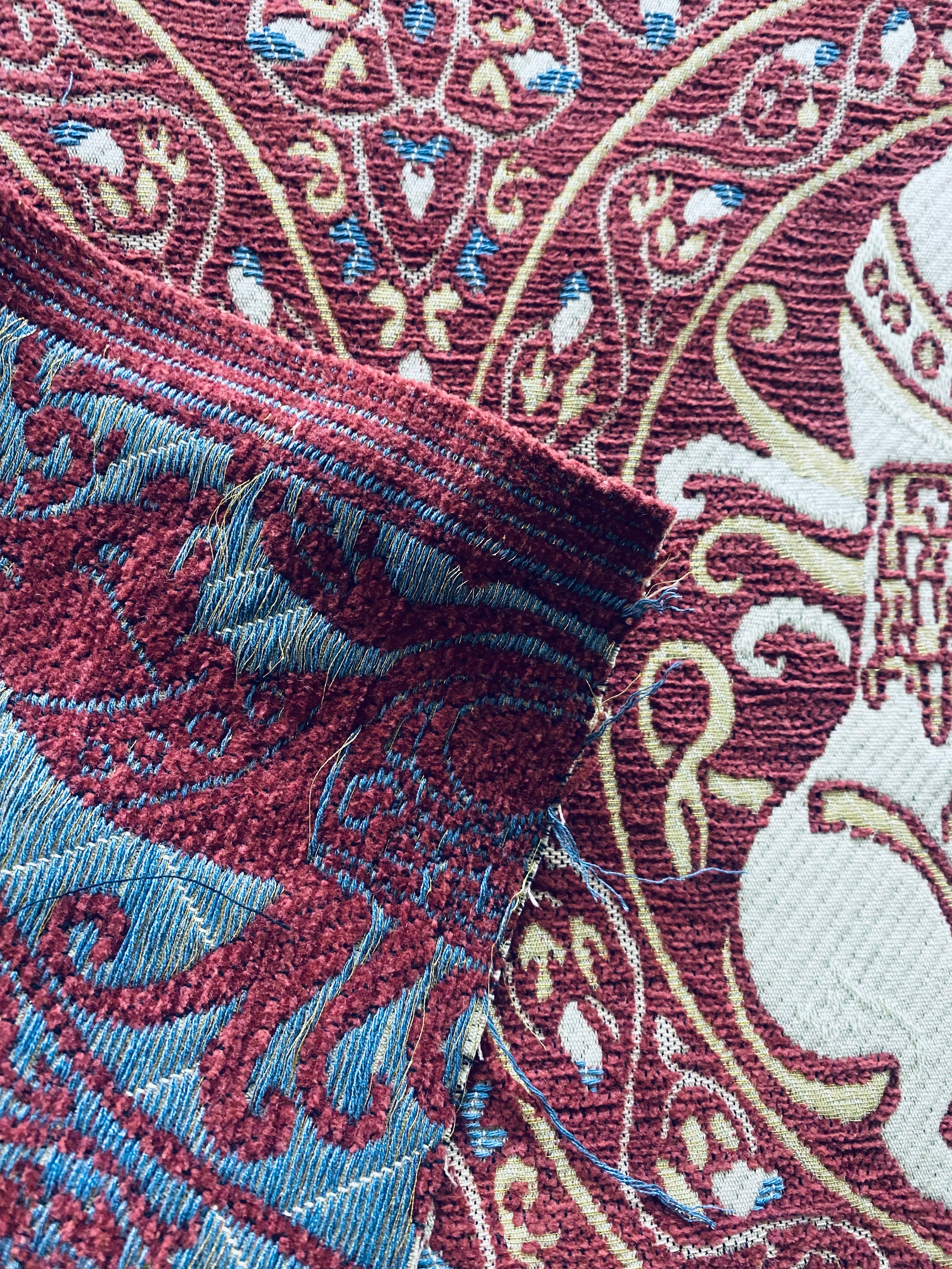 NEW! Duke Challemet Designer Italian Burnout Medallion Chenille Upholstery Fabric - Burgundy Red