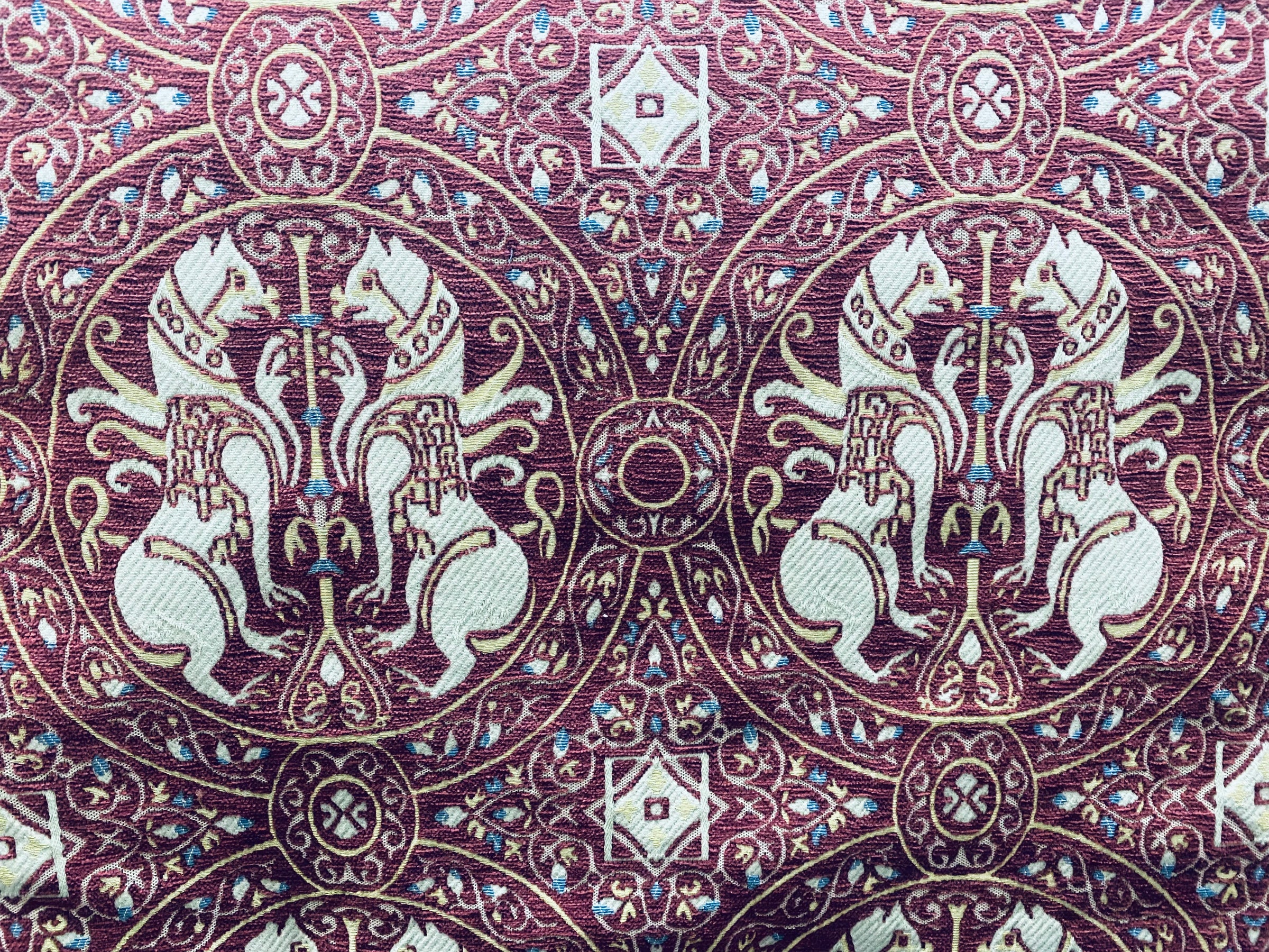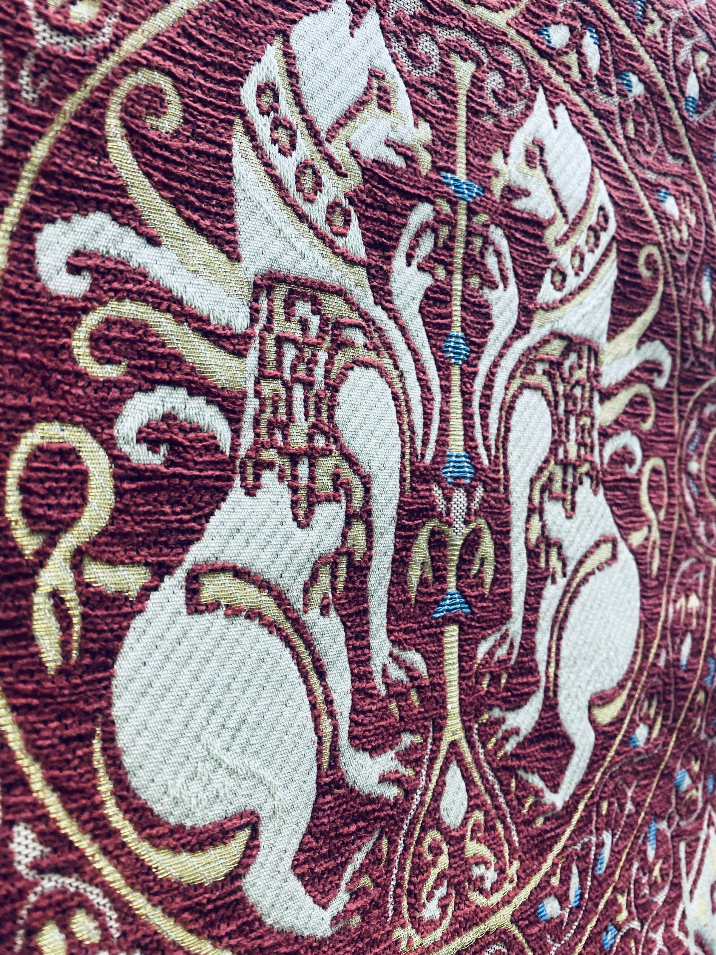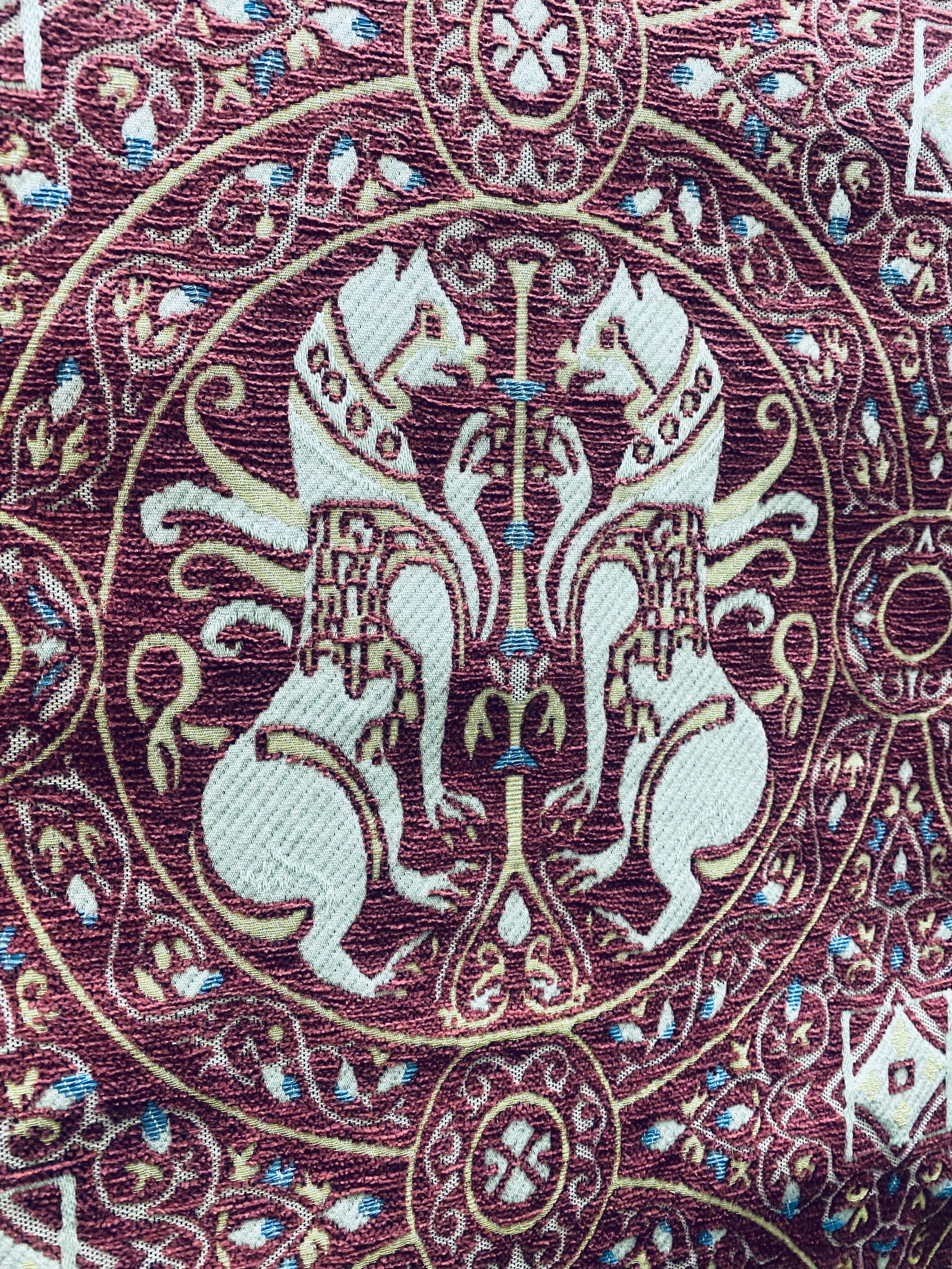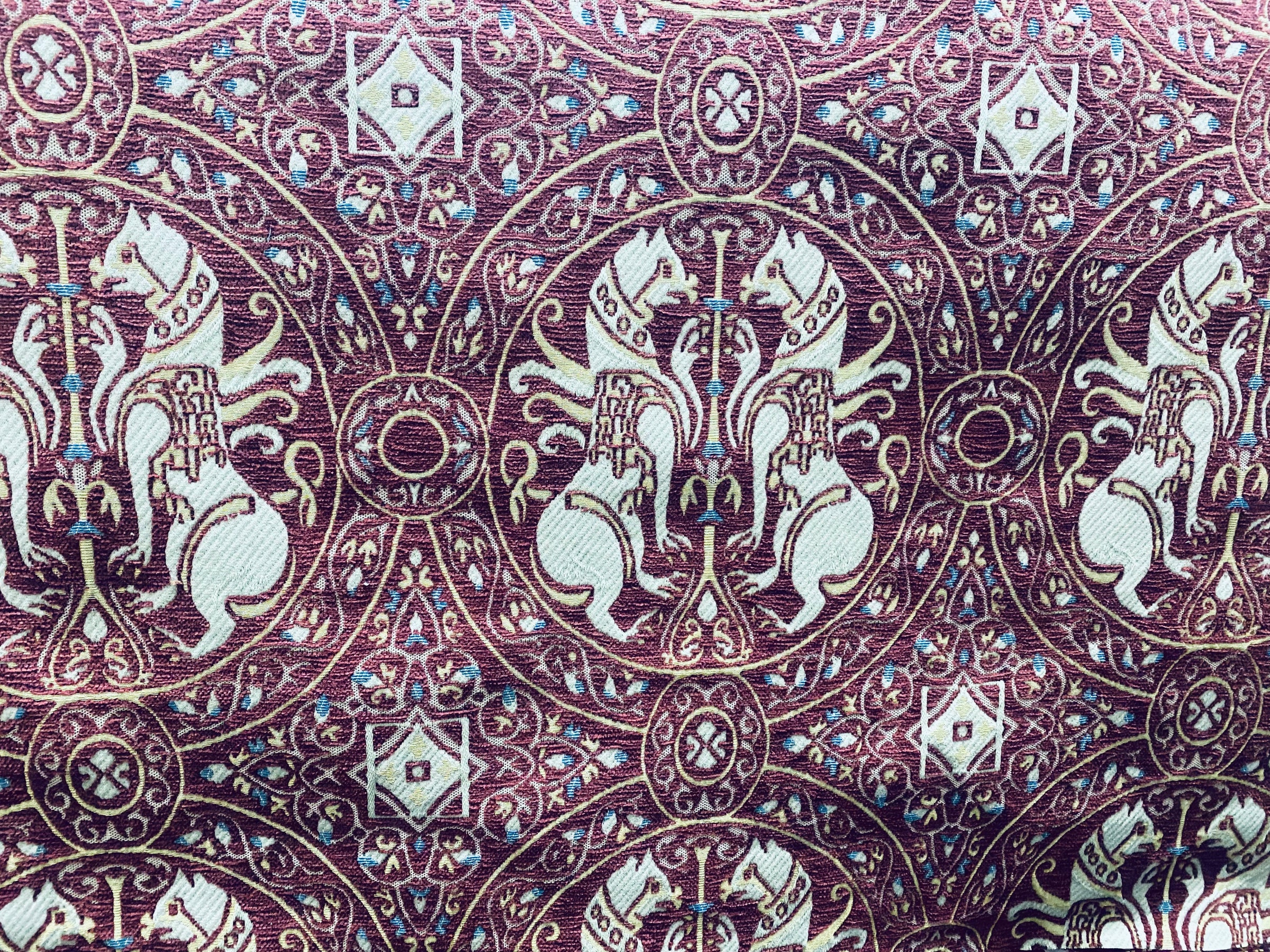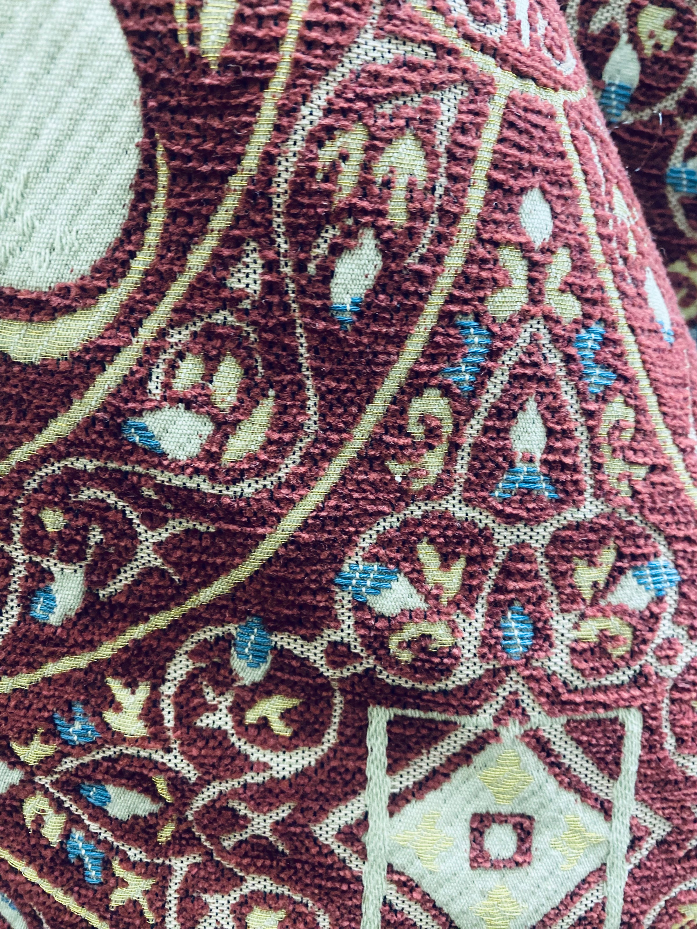 NEW! Duke Challemet Designer Italian Burnout Medallion Chenille Upholstery Fabric - Burgundy Red