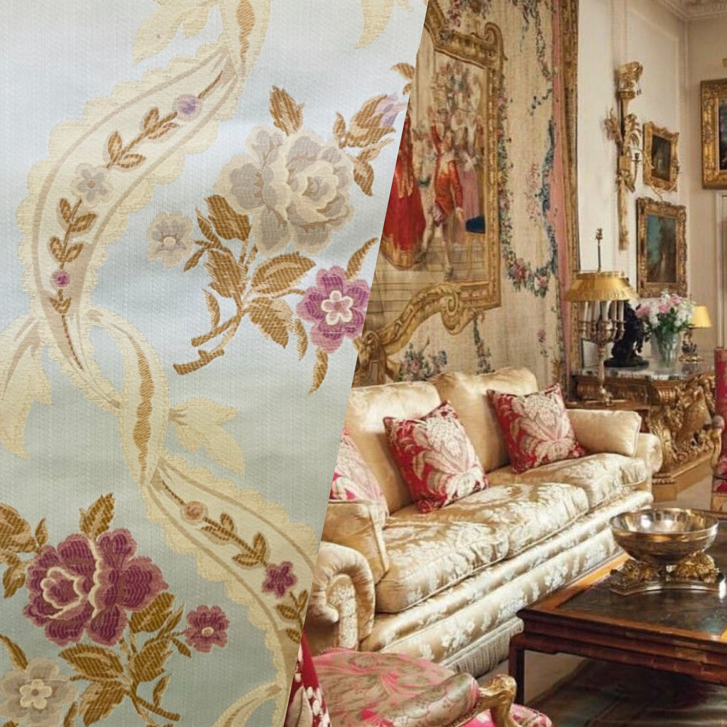 NEW! SALE! Italian Brocade Satin Fabric- Ivory- Floral Upholstery Neoclassical Louis