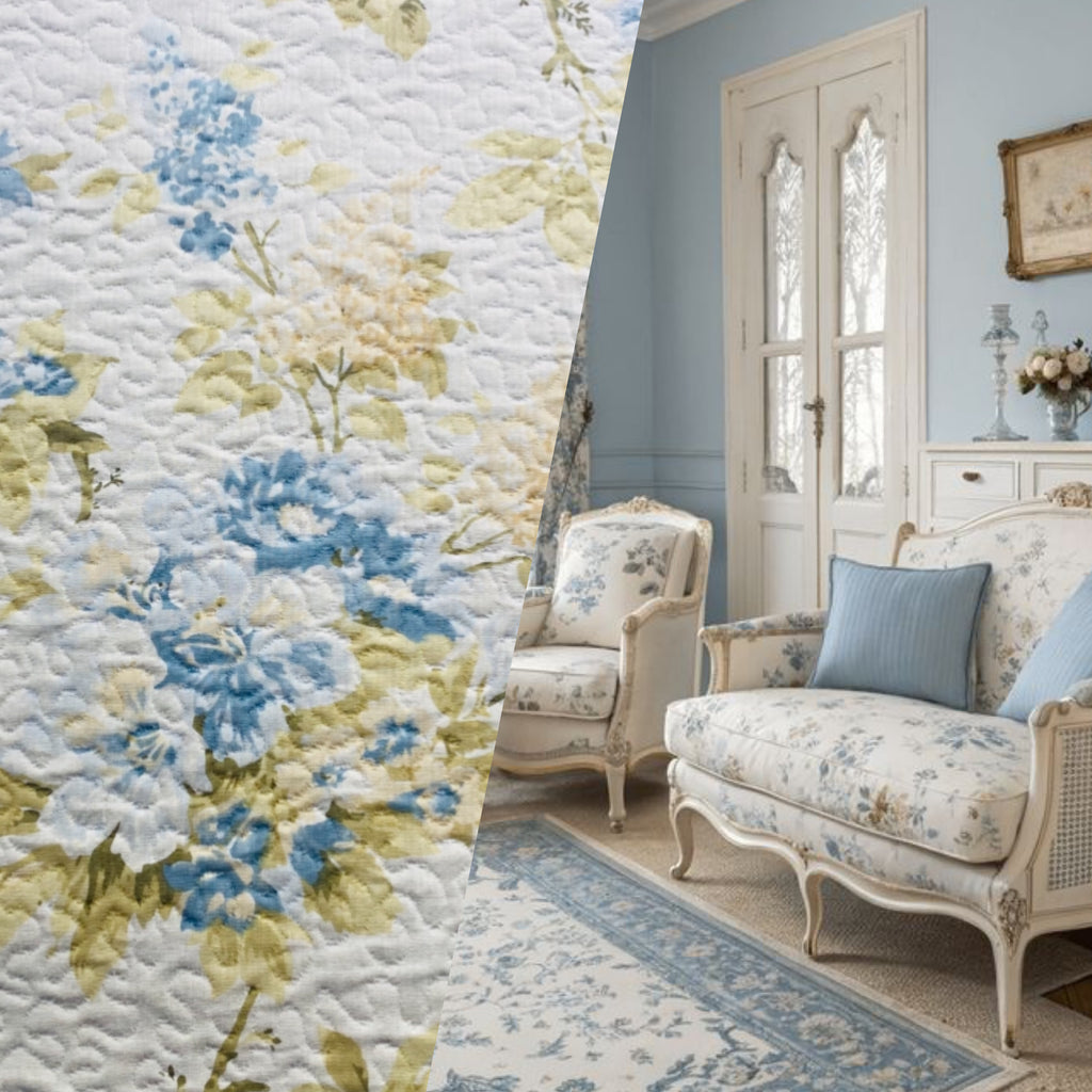 NEW Queen Lila Quilted Blanket Fabric Imported from Italy- Upholstery & Drapery- Blue Melange