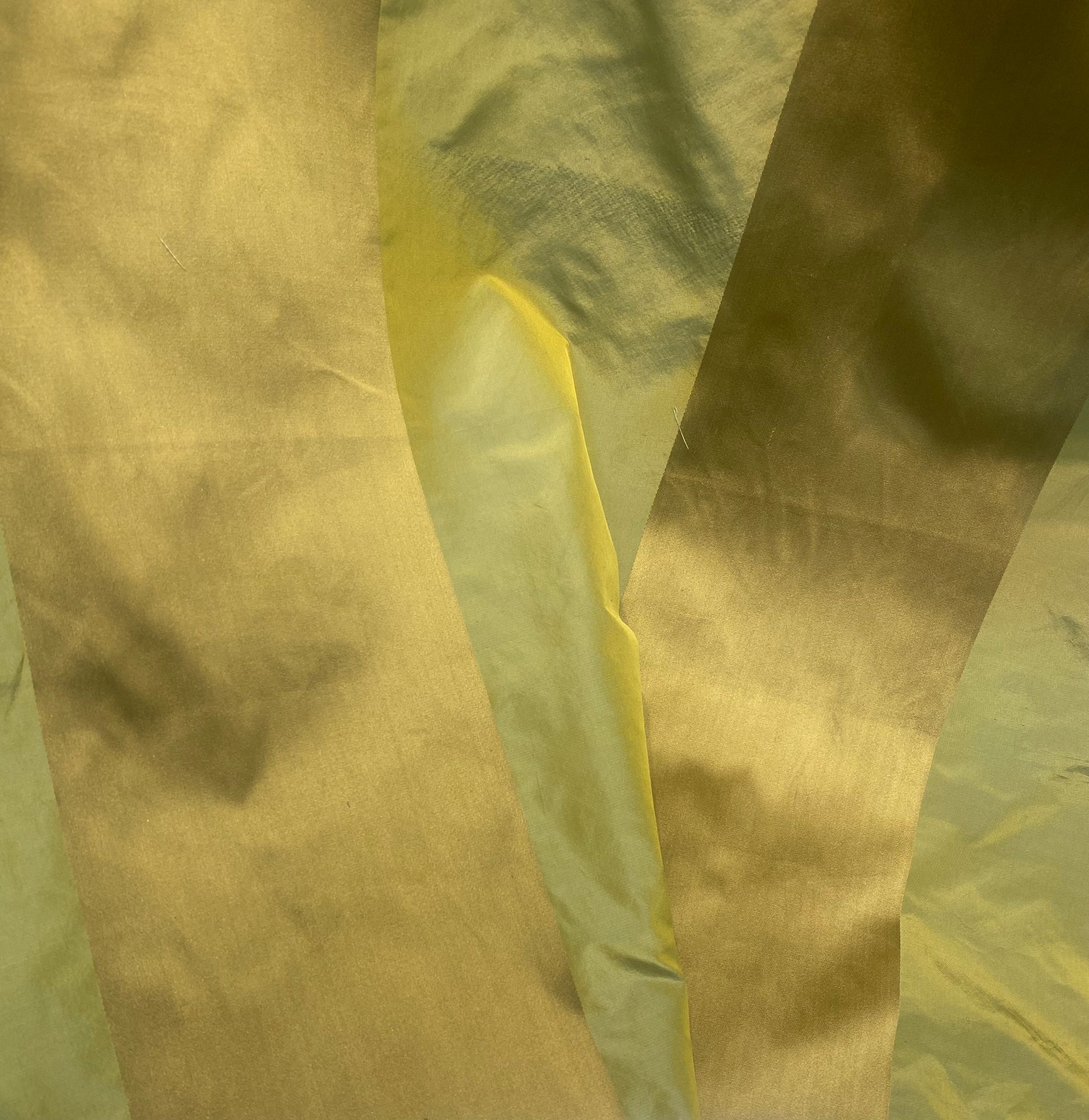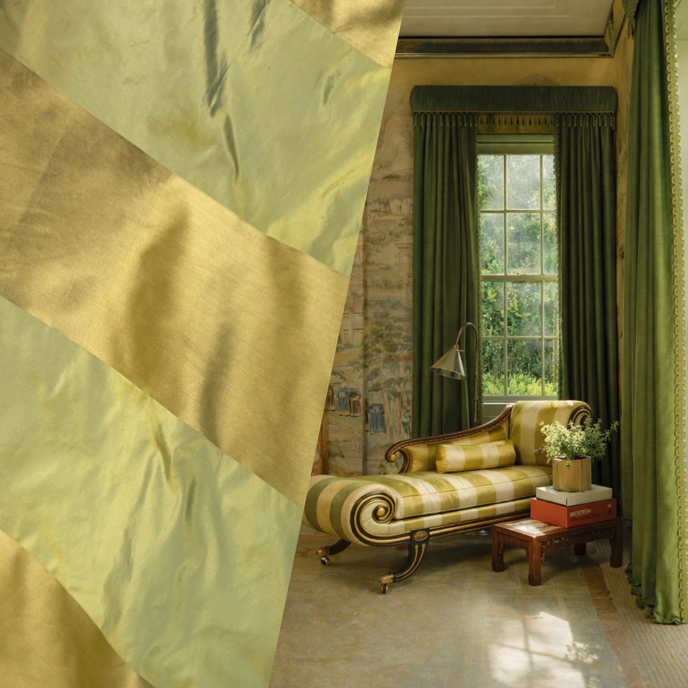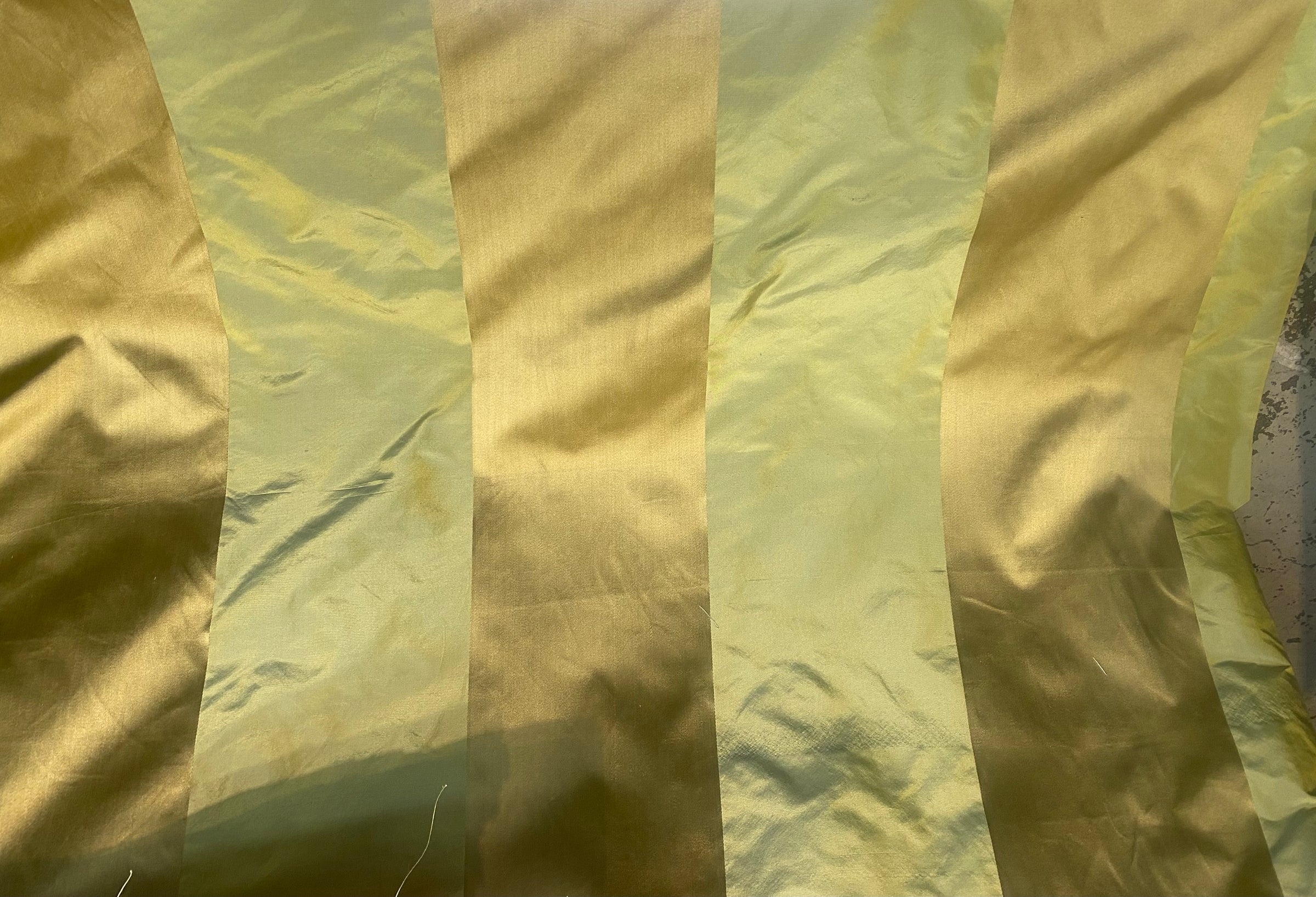 NEW Duchess Zoey Designer 100% Silk Taffeta and Satin 8” Stripes Fabric - Leaf Green & Gold BTY