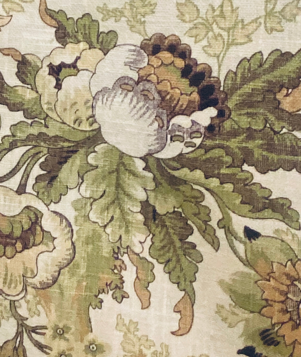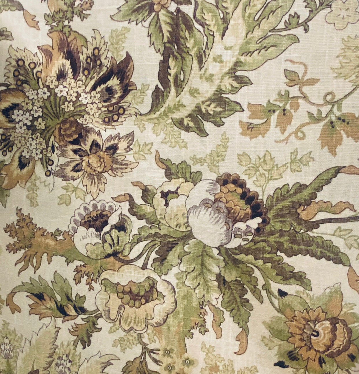 A beautiful Designer Novelty 100% Linen fabric with a gorgeous floral motif. Exquisite! The background is natural. Can be used for interior decorating or fashion. Sold by the yard. 55” wide.