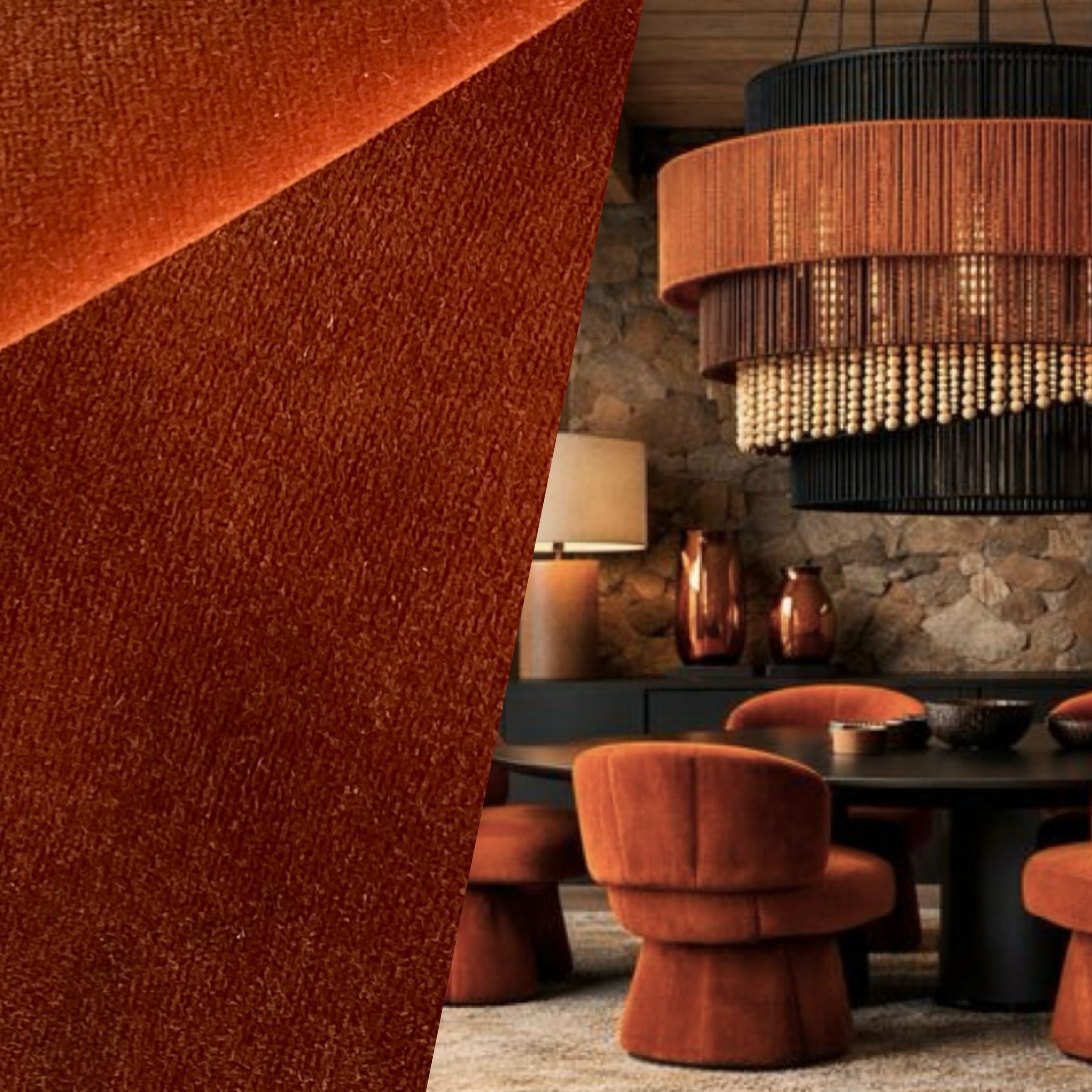 NEW COLOR! Prince Oliver - Designer 100% Cotton Made In Belgium Upholstery Velvet Fabric - Icy Burnt Orange