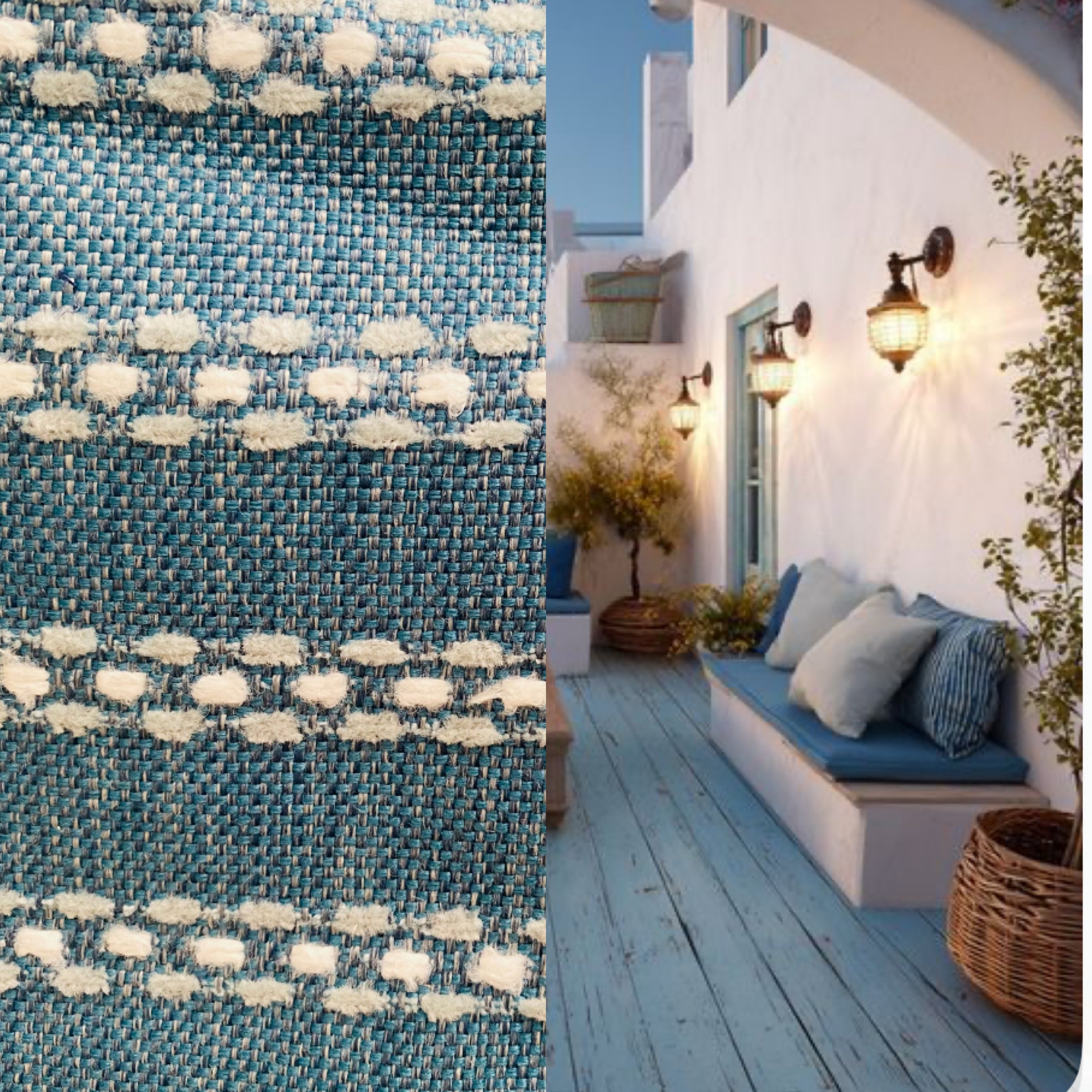 New! SUNBRELLA Blue Dot Stripes Boucle Waterproof Indoor Outdoor Upholstery Fabric
