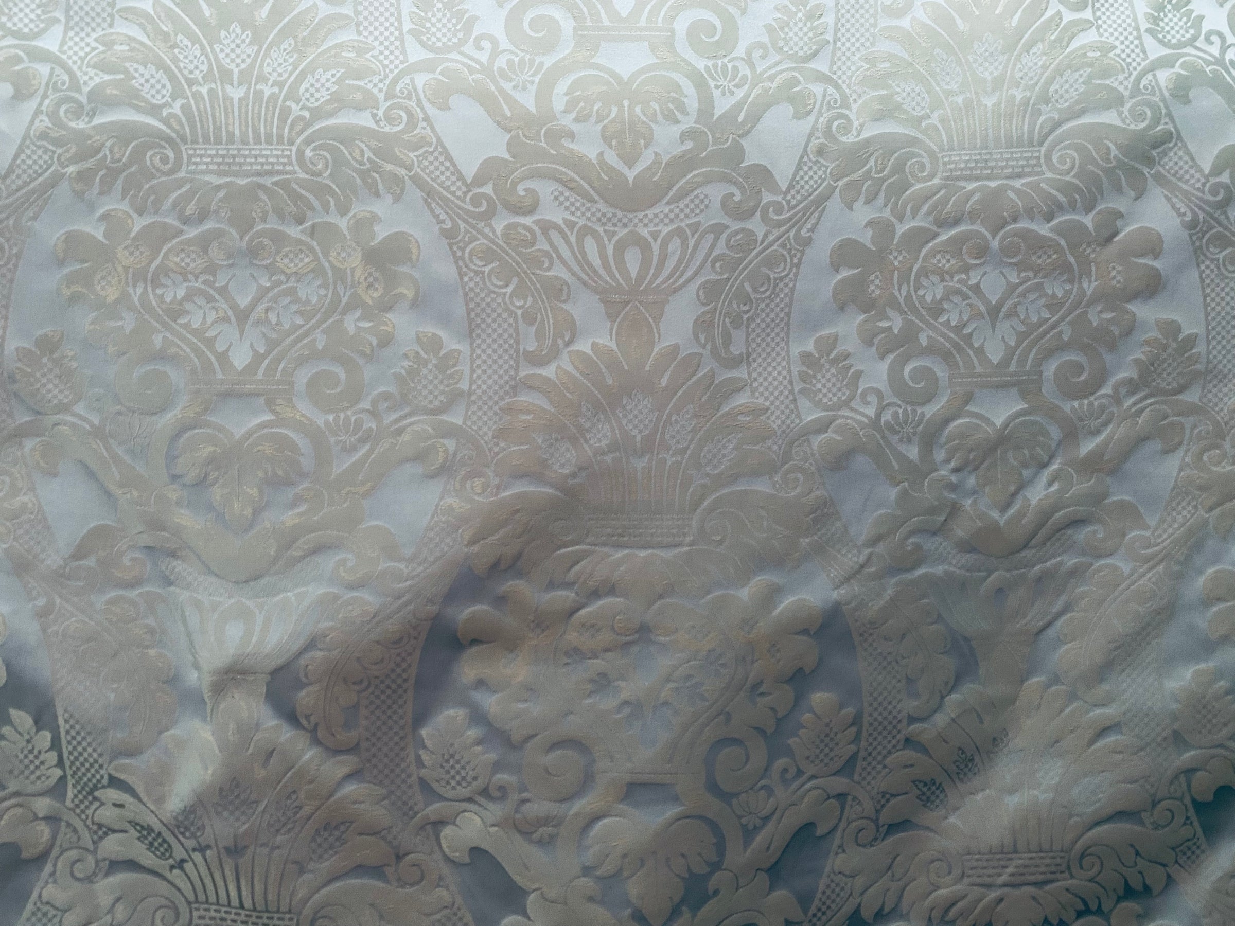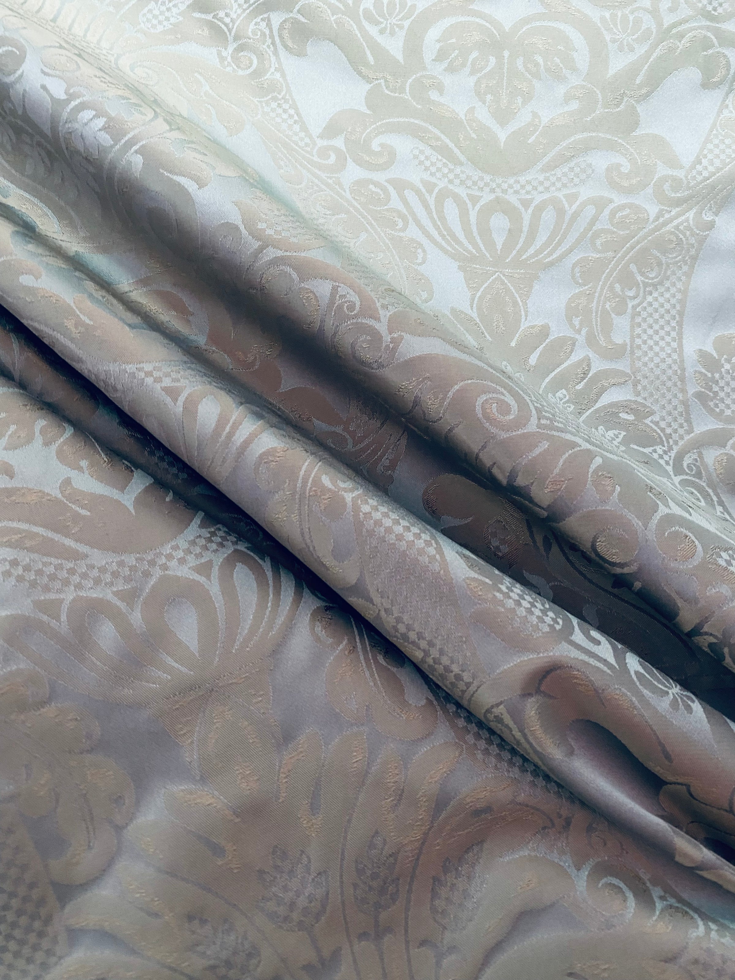 NEW! King Jeffra 100% Silk Taffeta Novelty Jacquard Drapery Fabric in Damask- Silvery Blue