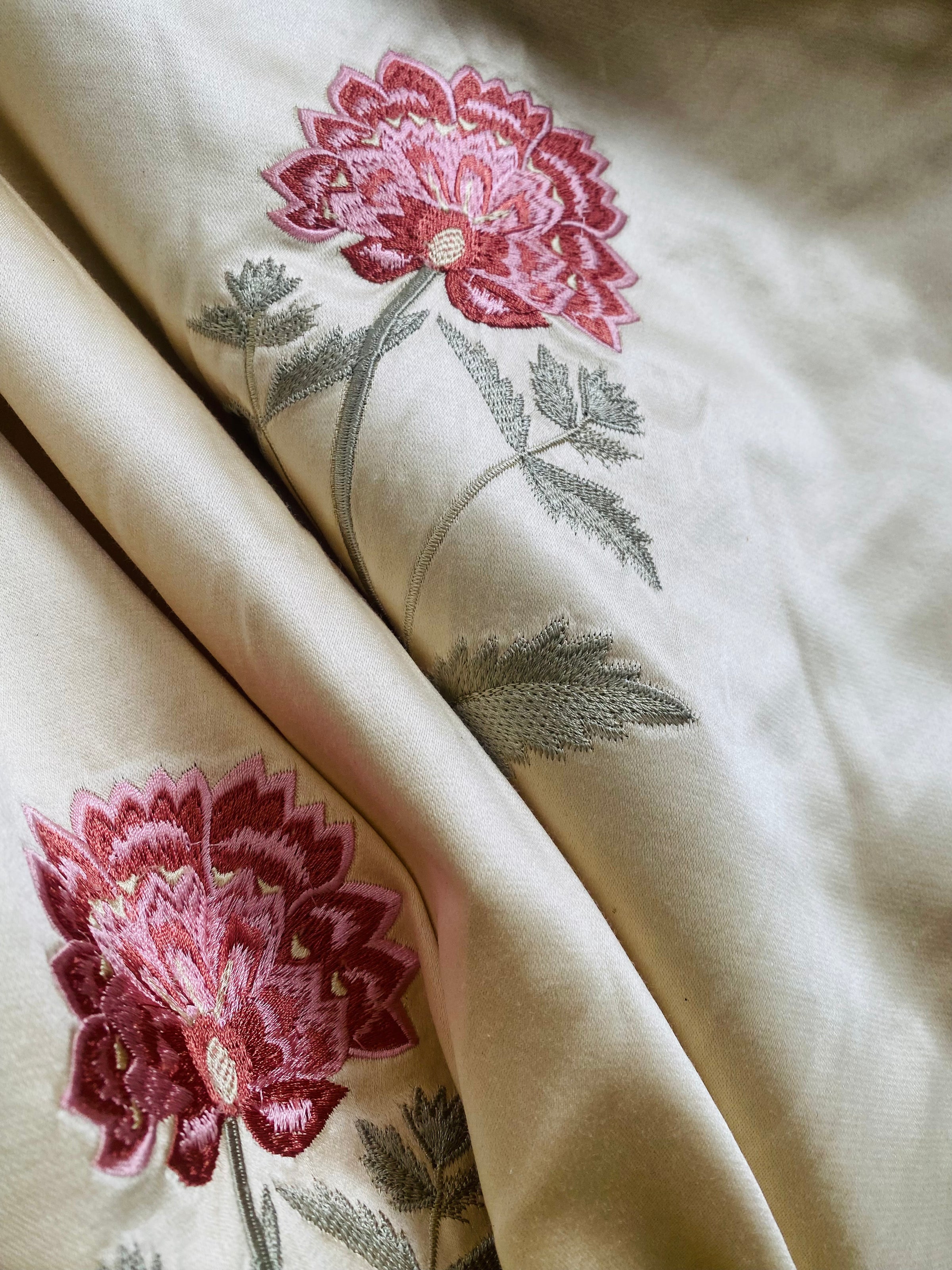 NEW! Queen Slamia 100% Silk Taffeta Novelty Embroidered Drapery Fabric in Floral- Cream