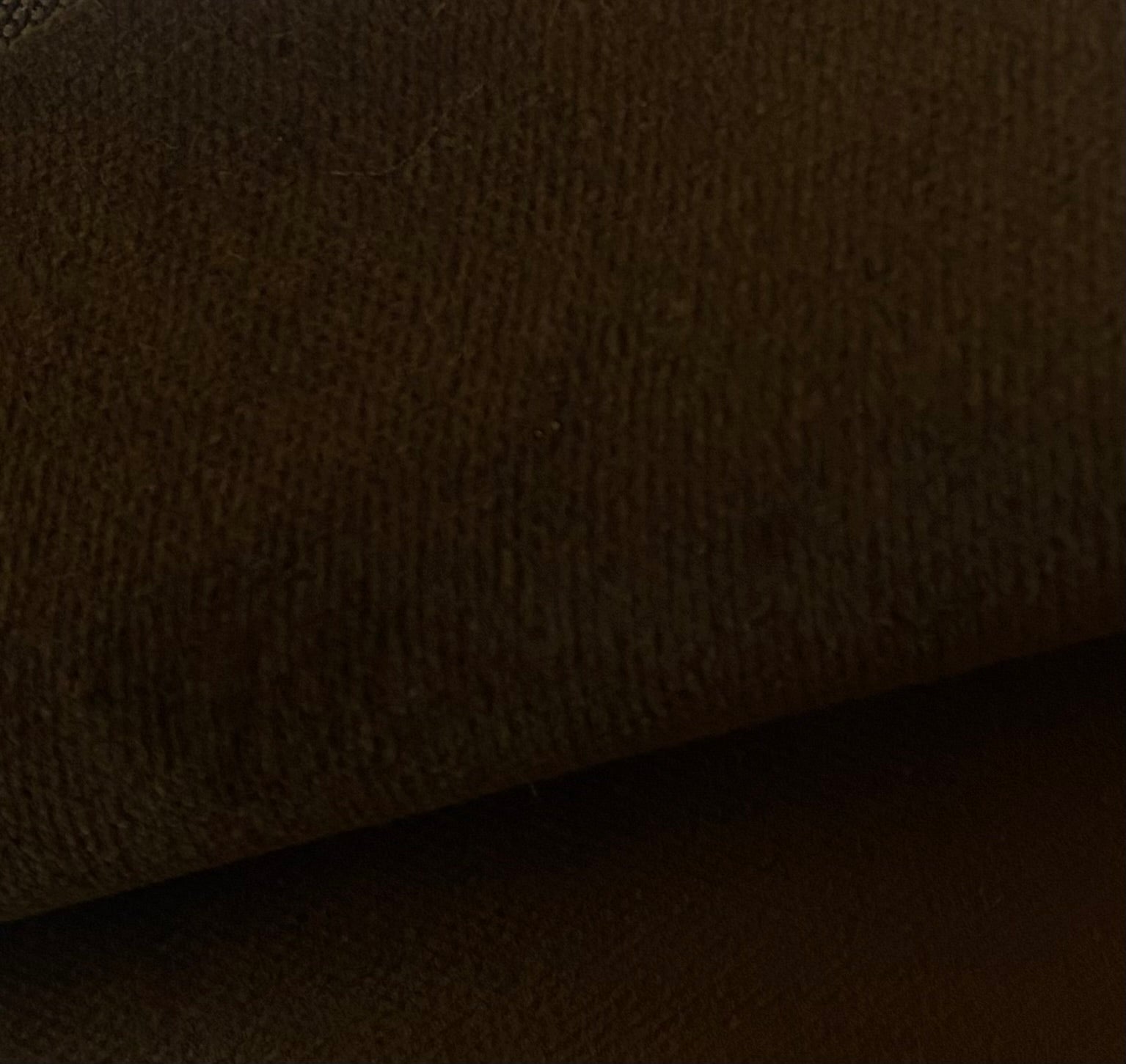 A beautiful durable upholstery weight designer velvet woven fabric with a soft even hand. Can be used for upholstery, interior decorating, or coat garments. Sold by the yard. Chocolate Brown. 56” wide.
