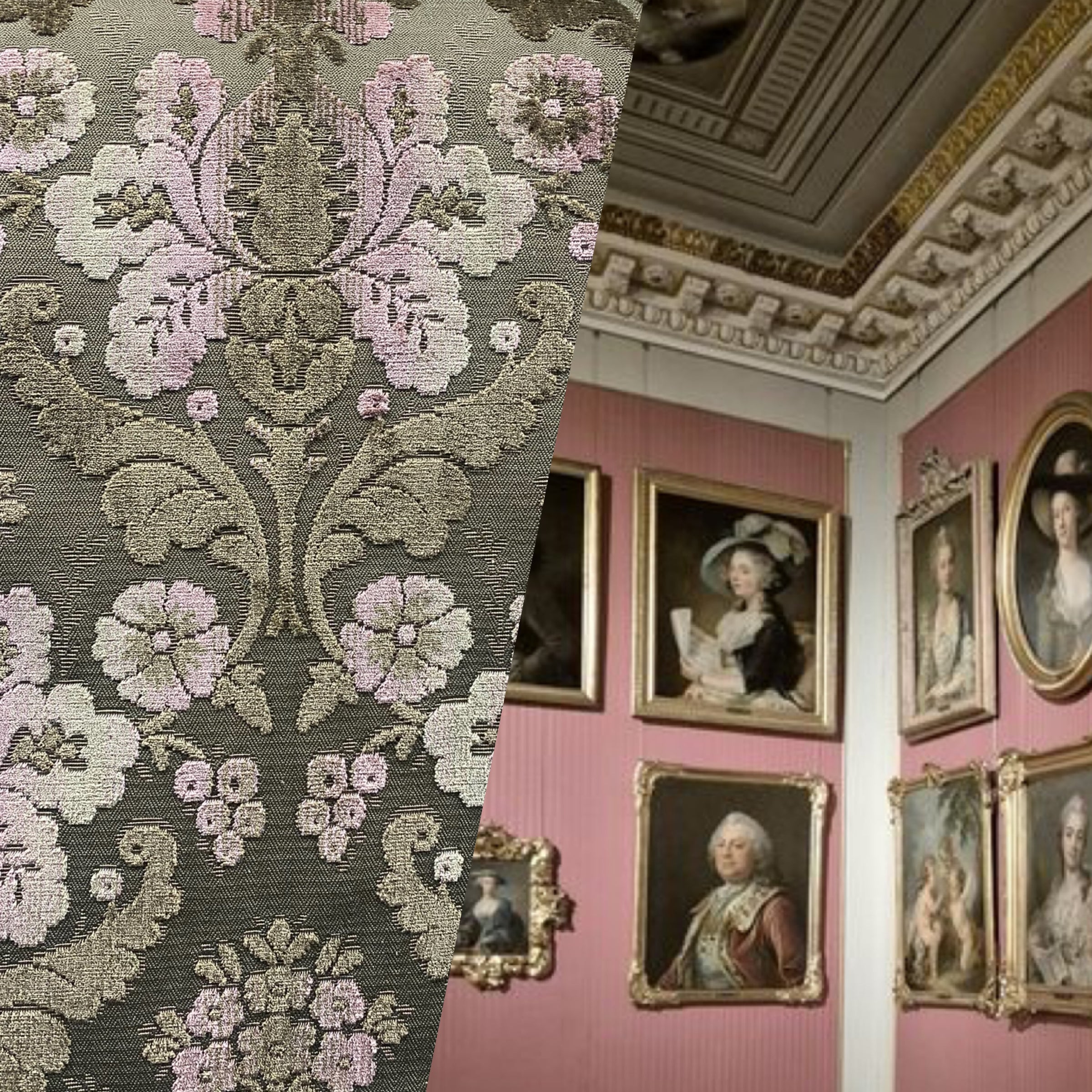 NEW! Duke Napoli Designer Venetian Italian Burnout Medallion Chenille Pink Taupe Fabric Upholstery Style# HG10008