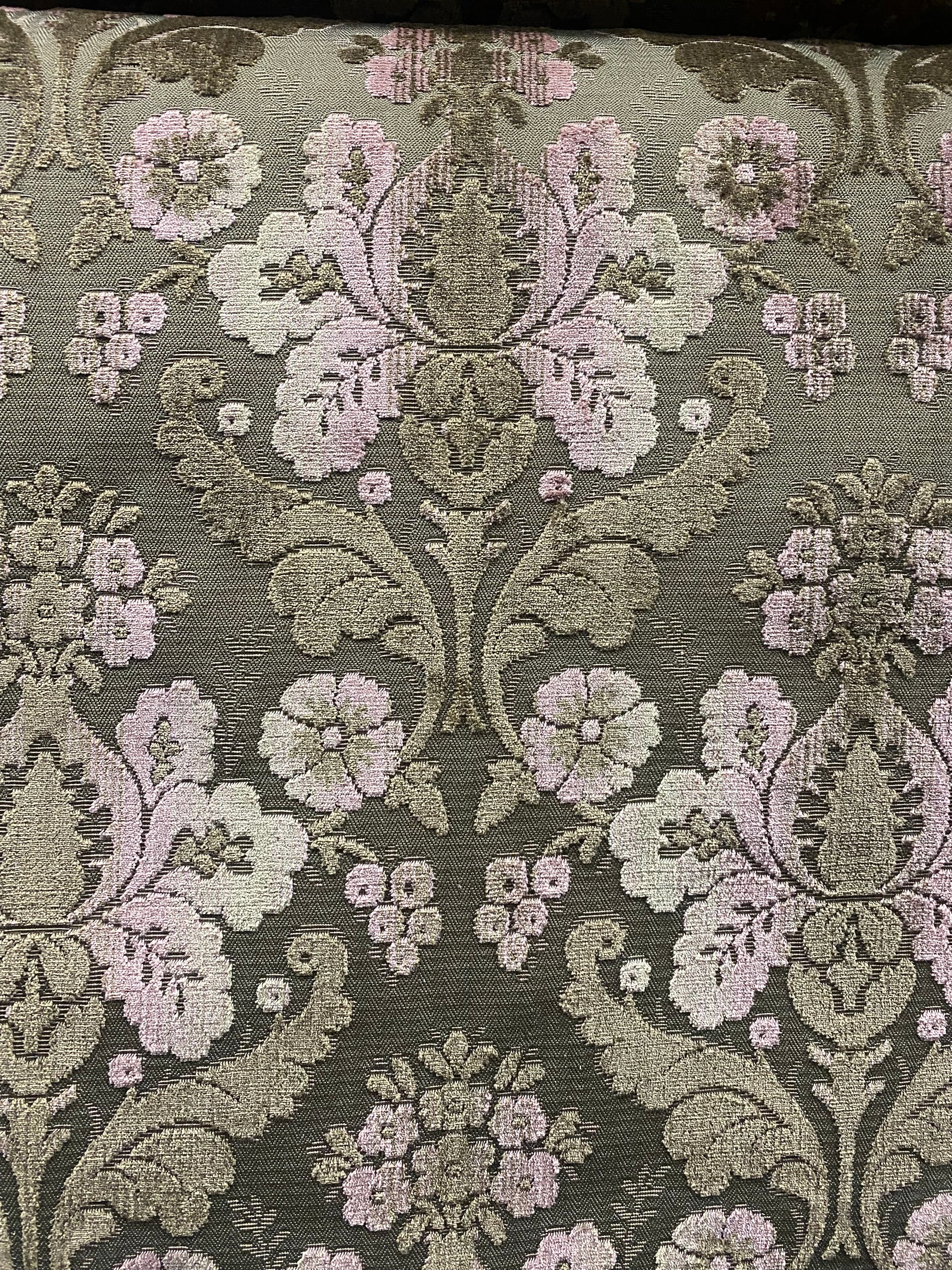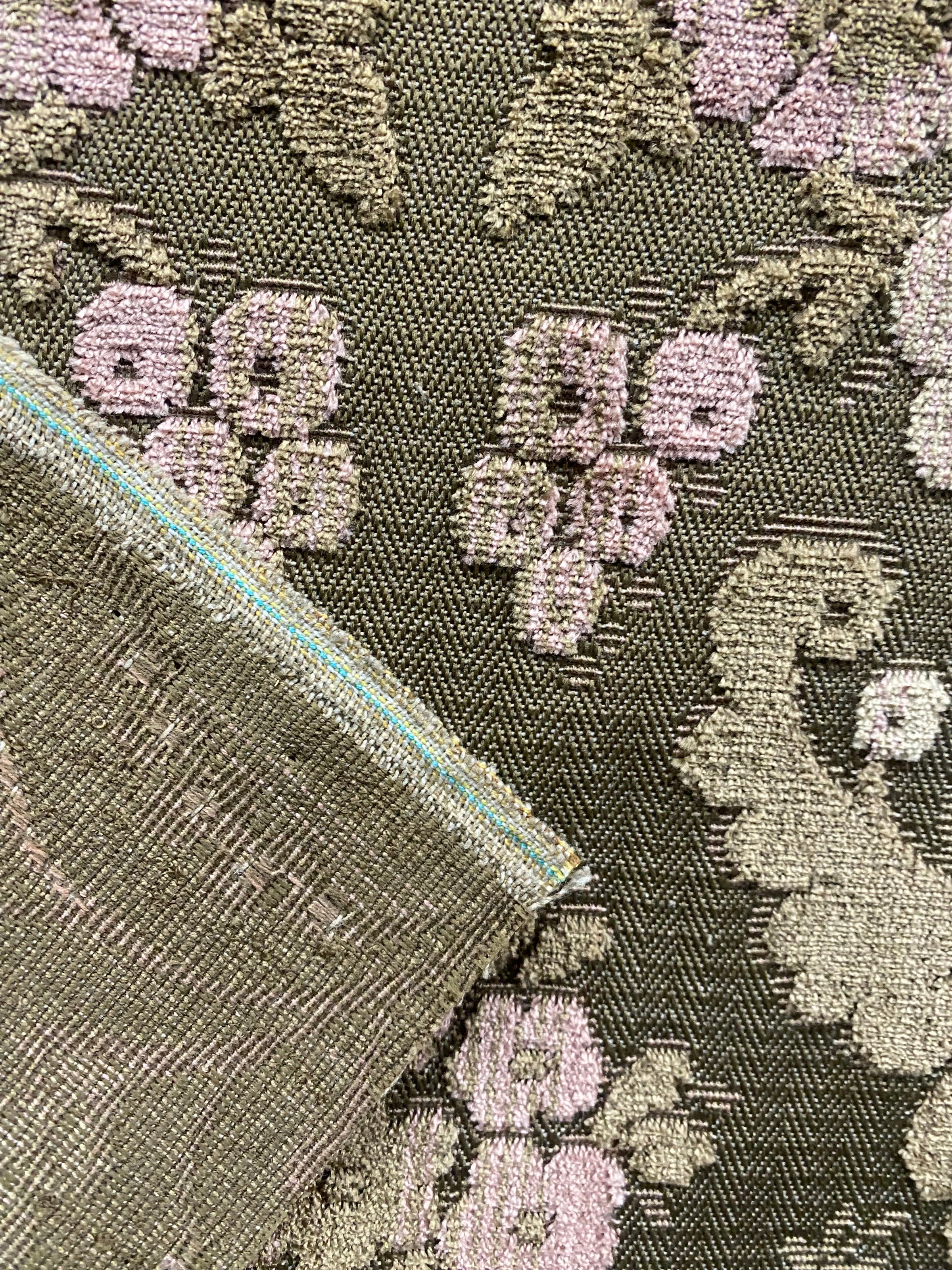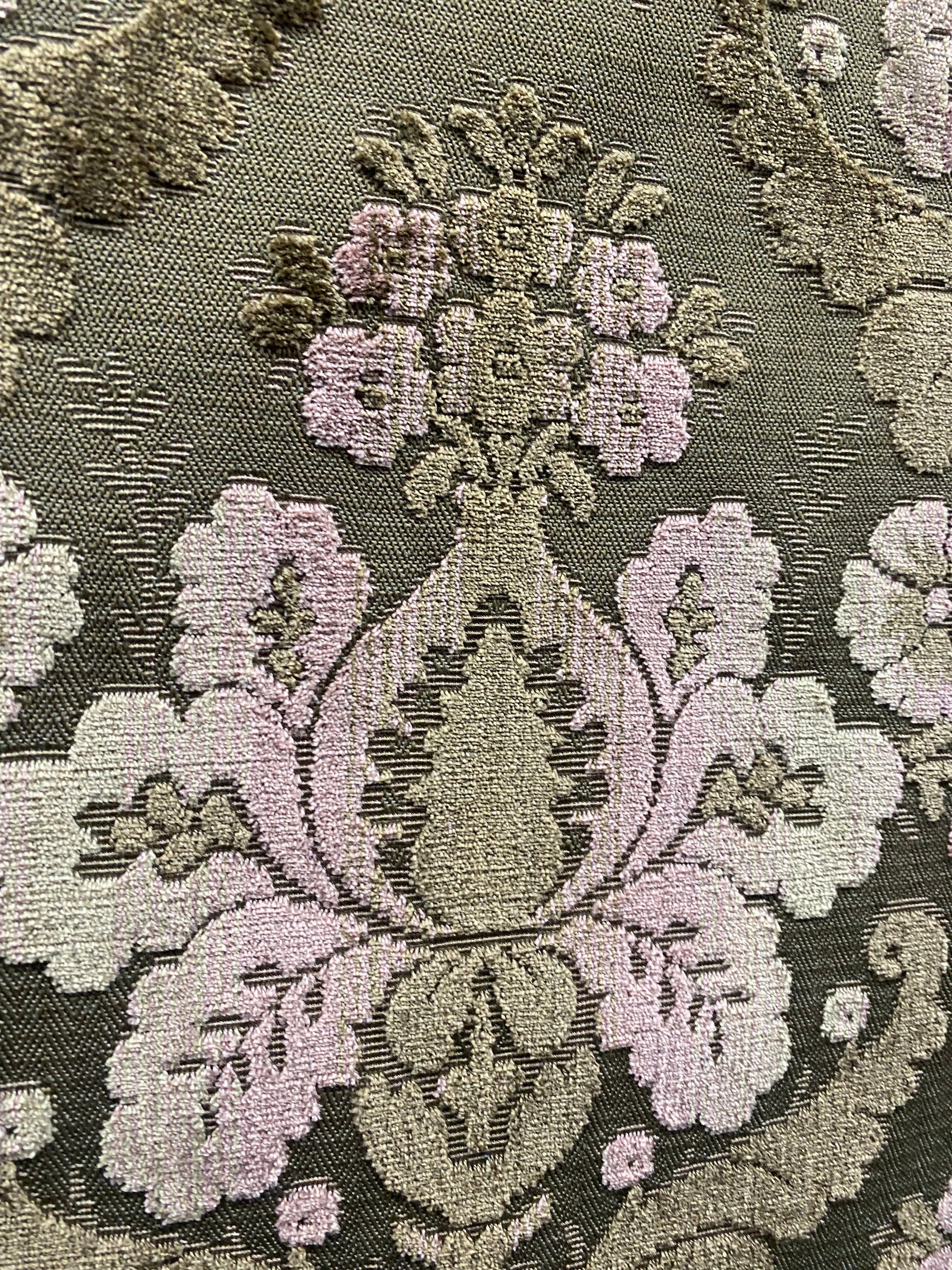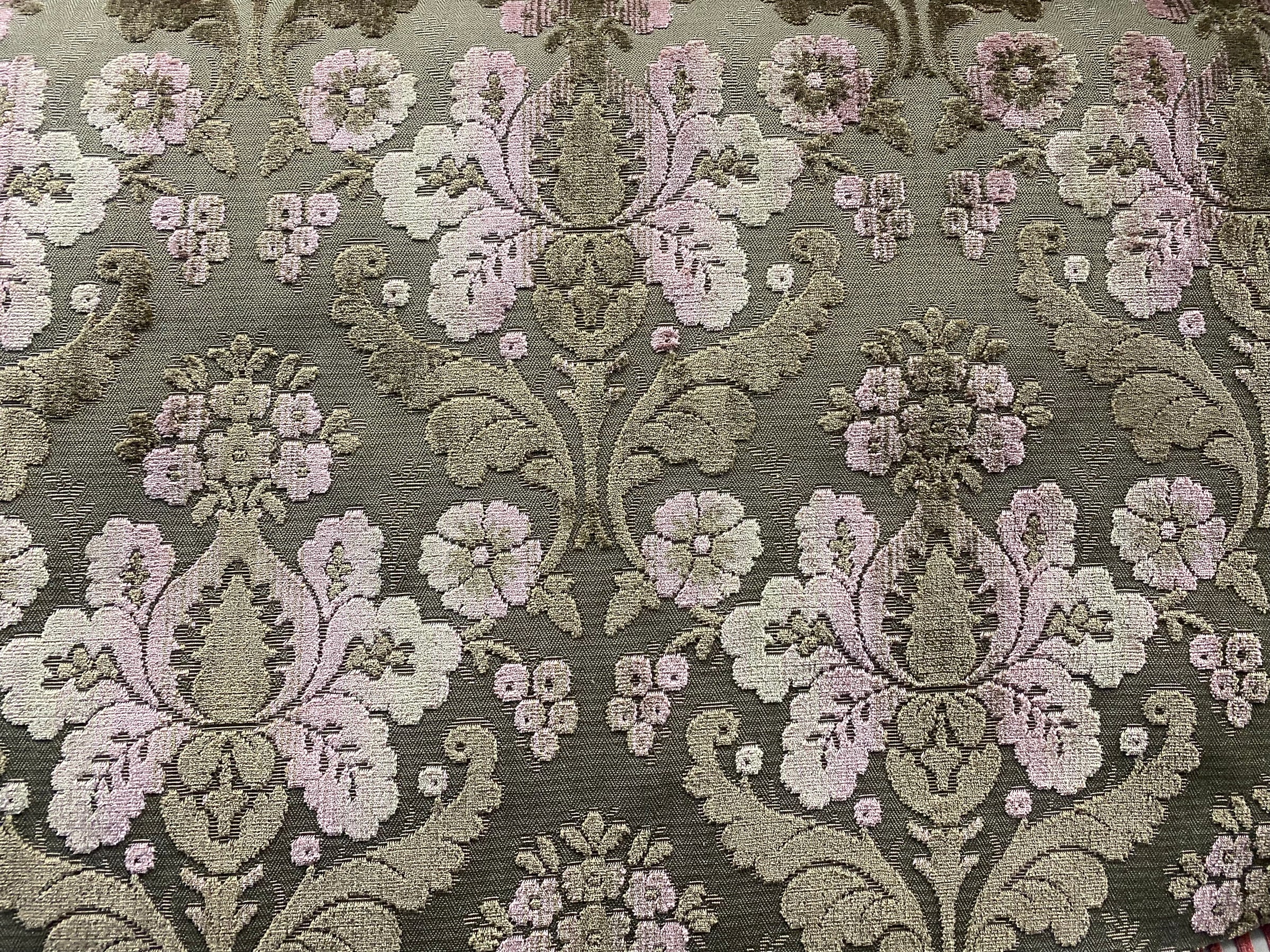 Another amazing upholstery fabric imported from Italy. If you are going to decorate in style, you want to have the real deal... this is it! A beautiful upholstery weight designer burnout velvet fabric inspired by the elevated design of Italian interiors, the rich hue of Taupe and Pink creates a gorgeous motif across the fabric. The burnout velvet has a very rich thick pile, almost chenille type texture. Can be used for upholstery, interior decorating, or coat garments. Sold by the yard. 54” wide.