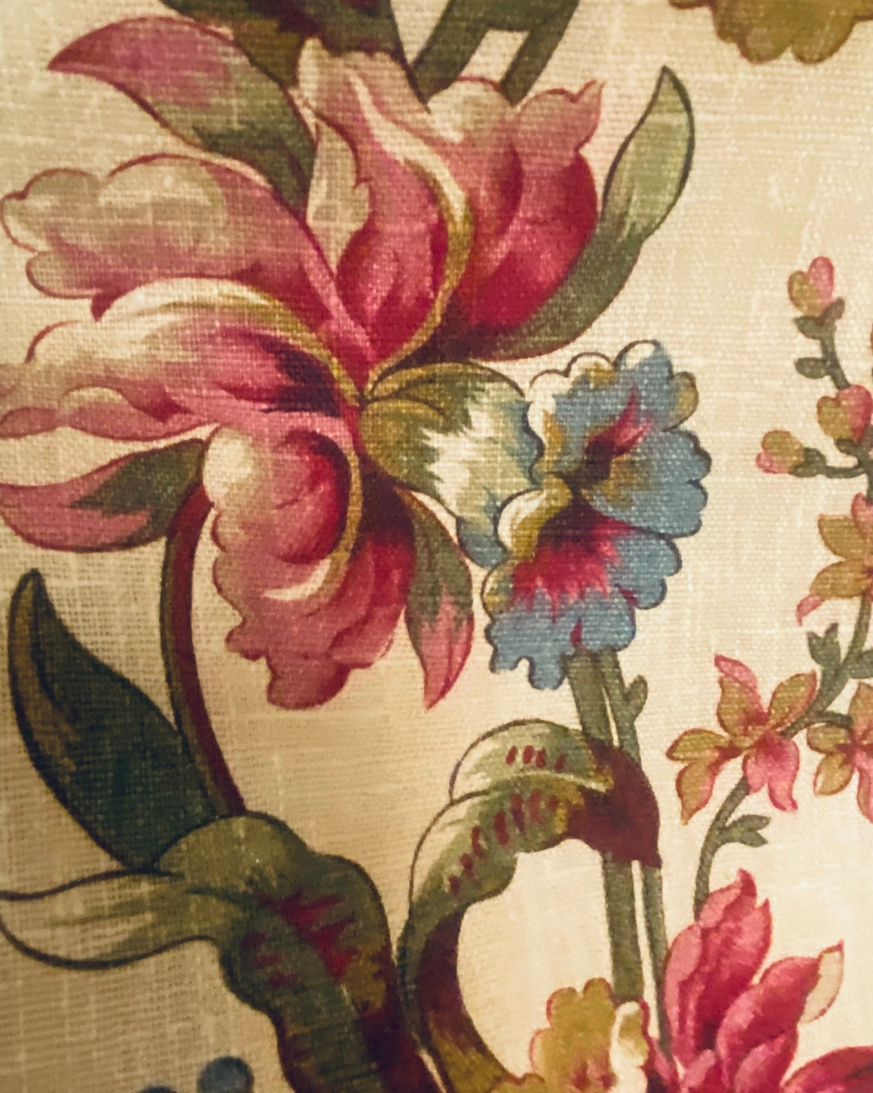 A beautiful Designer Novelty 100% Linen fabric with a gorgeous floral motif. Exquisite! The background is natural. Can be used for interior decorating or fashion. Sold by the yard. 55” wide.