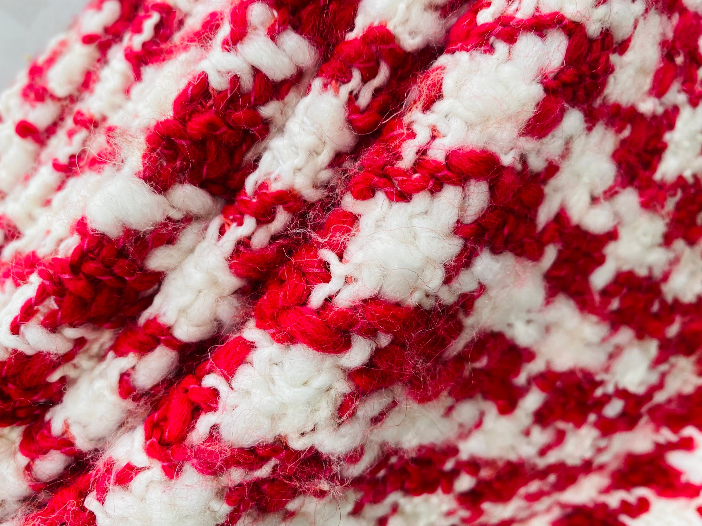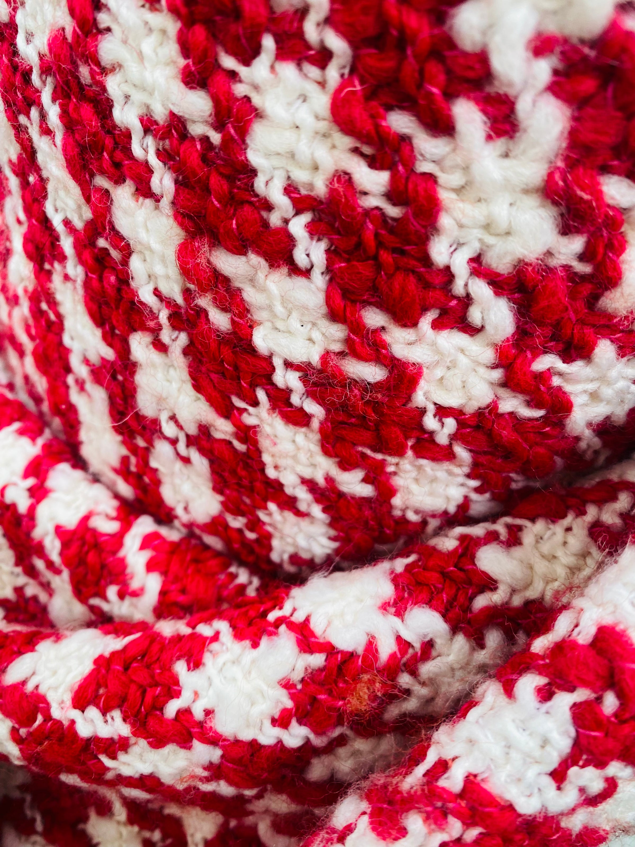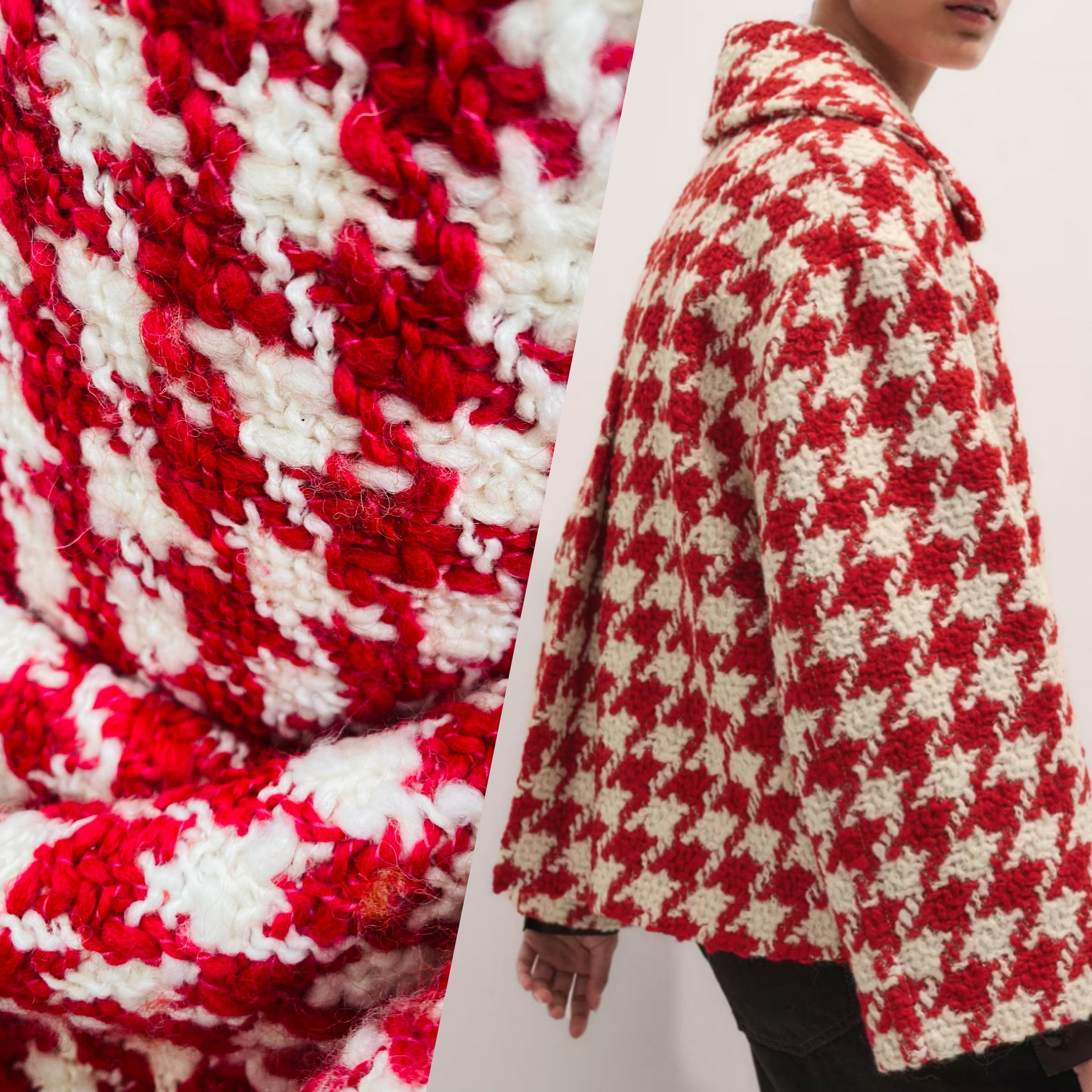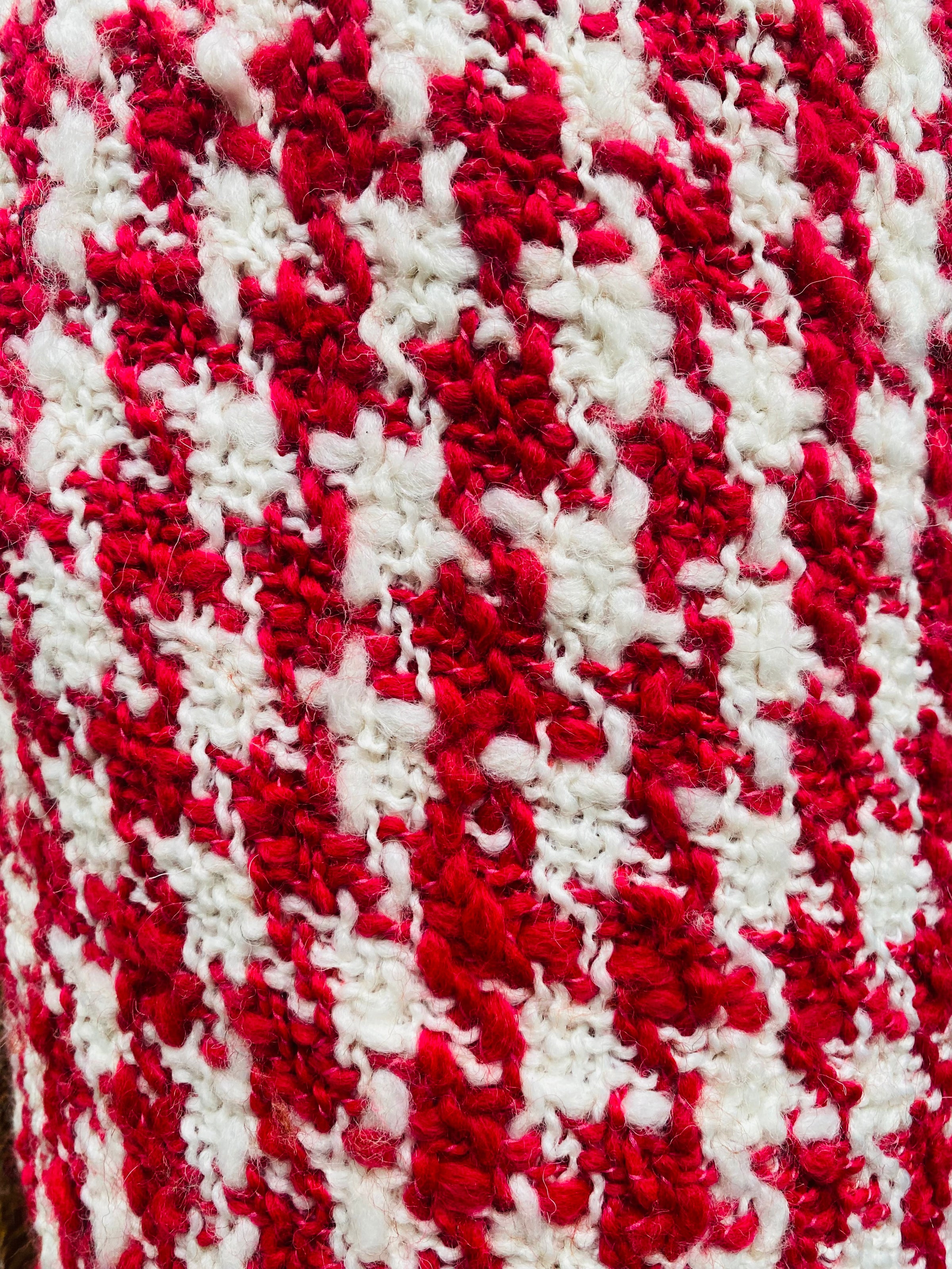 NEW Sir Marco Designer Italian Oversized Houndstooth Knit Wool Blend Fabric - Fuchsia Red & White