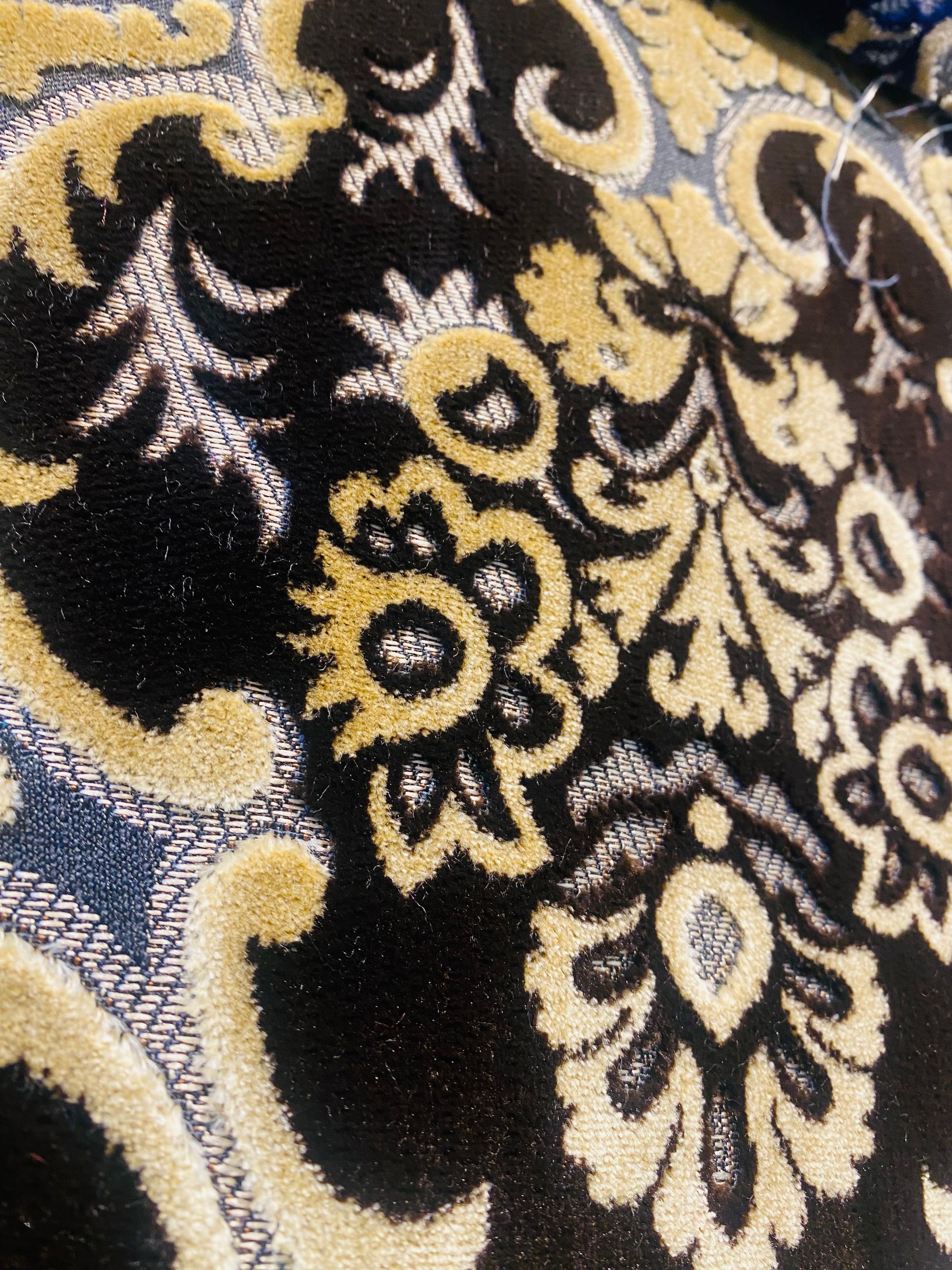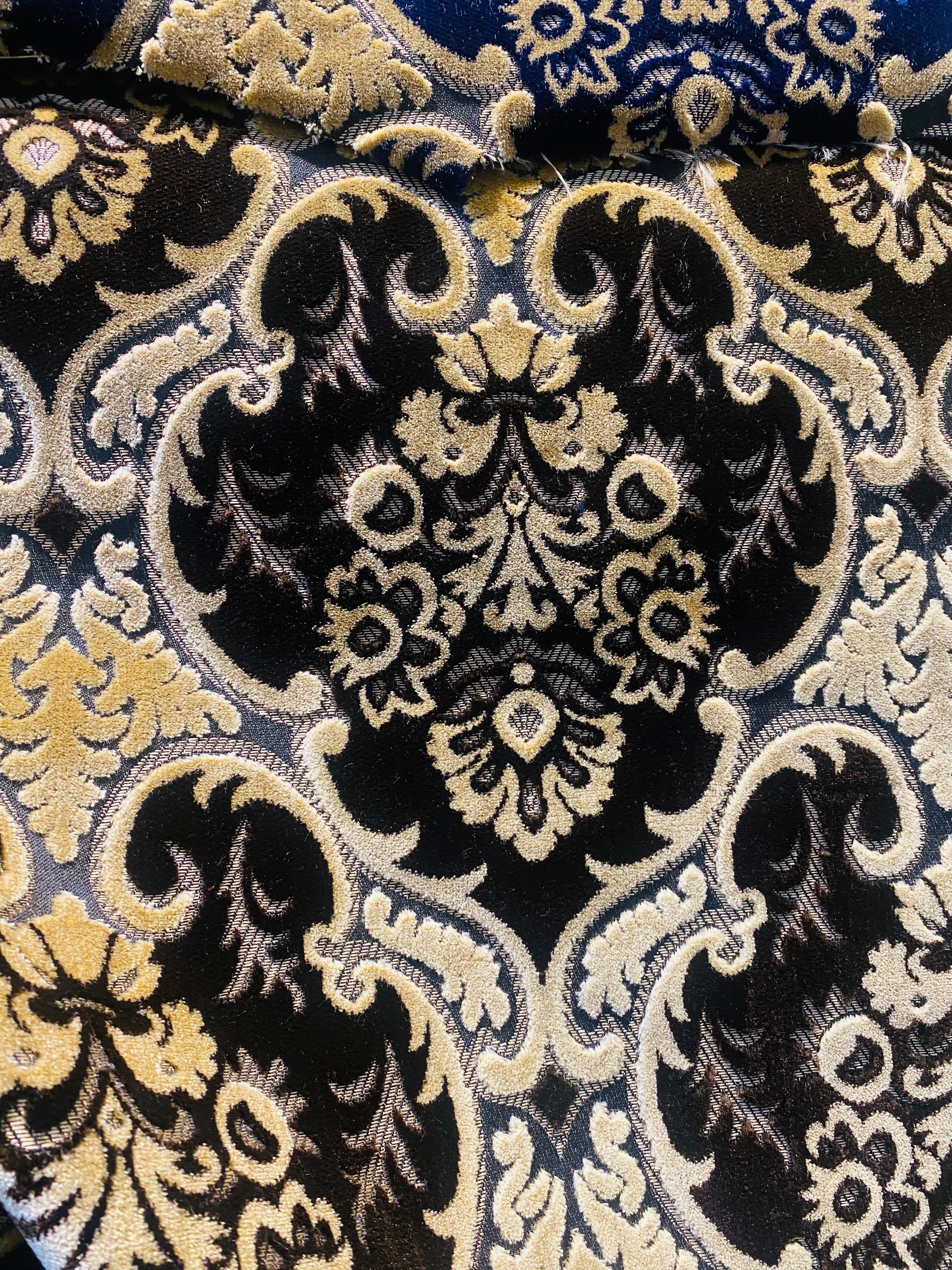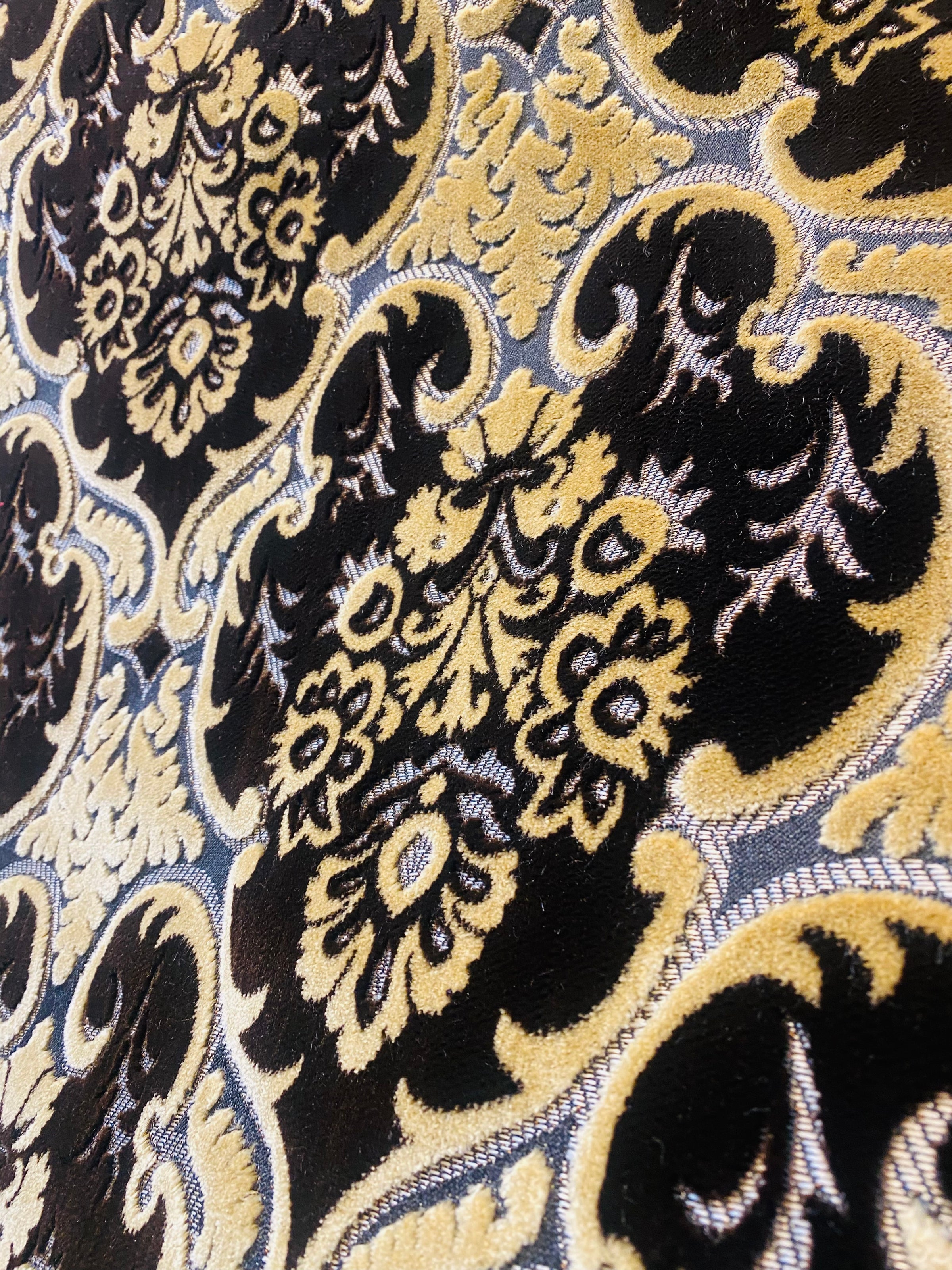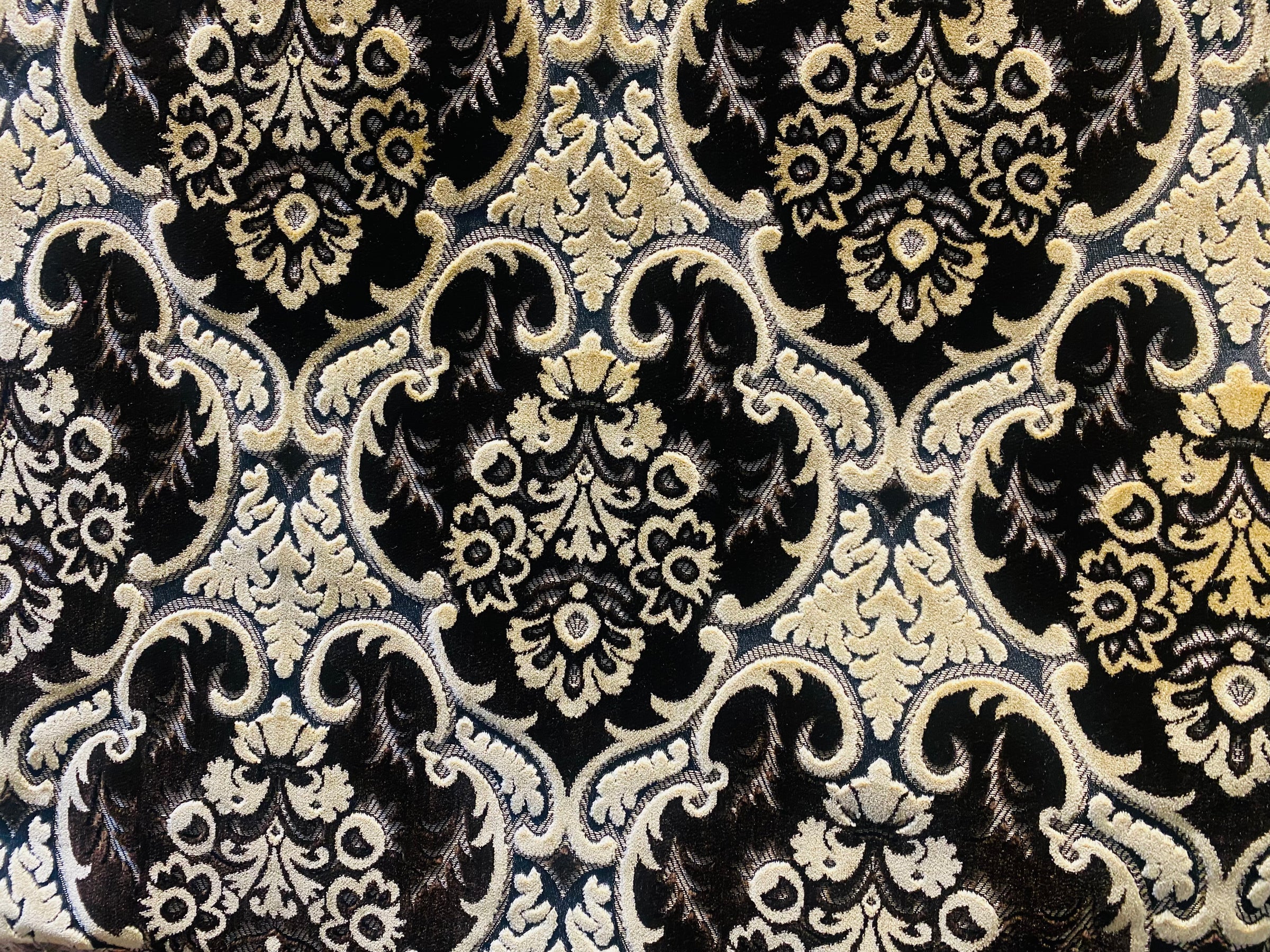 Another thick beautiful burnout velvet with Italian flair! A beautiful durable upholstery weight designer burnout velvet woven fabric. Inspired by old world Italian style, the deep rich hues of Brown and Beige create a medallion motif across the fabric. The burnout velvet has a very rich thick pile type texture. Exquisite! Can be used for upholstery, interior decorating, or coat garments. Sold by the yard. 56” wide.