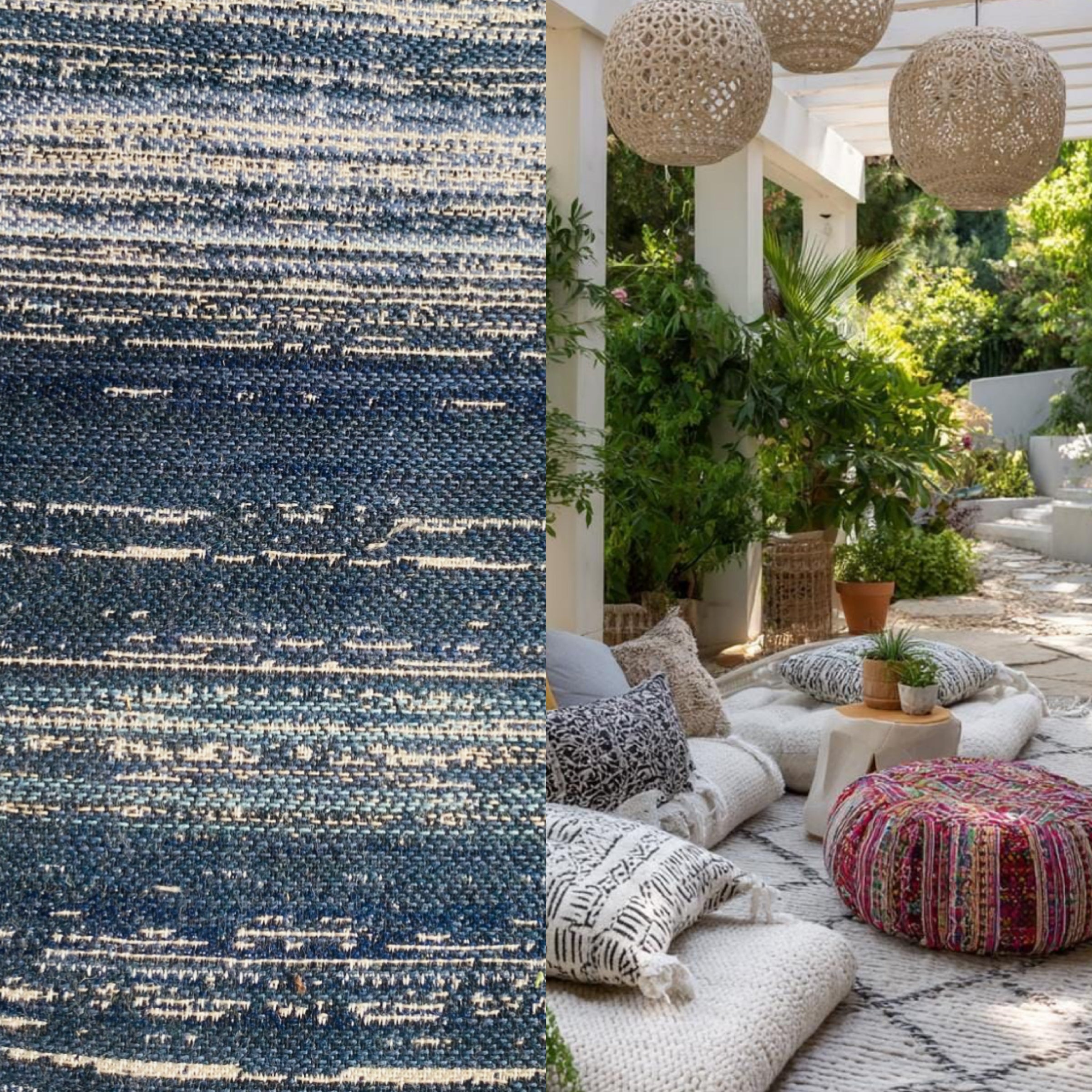 Photo of the outdoor room is for inspirational purposes only. The photos of the fabric is the actual fabric being sold.
