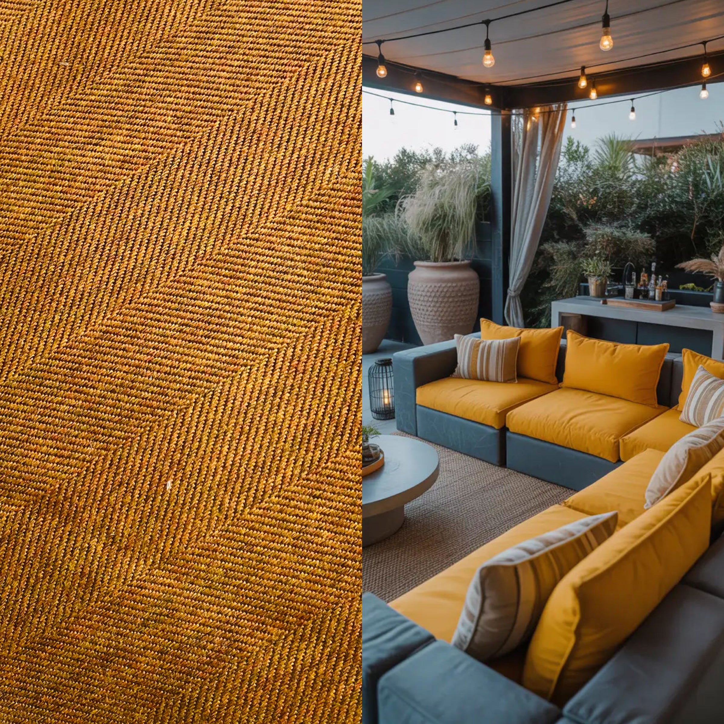 Photo of the outdoor room is for inspirational purposes only. The photos of the fabric is the actual fabric being sold.